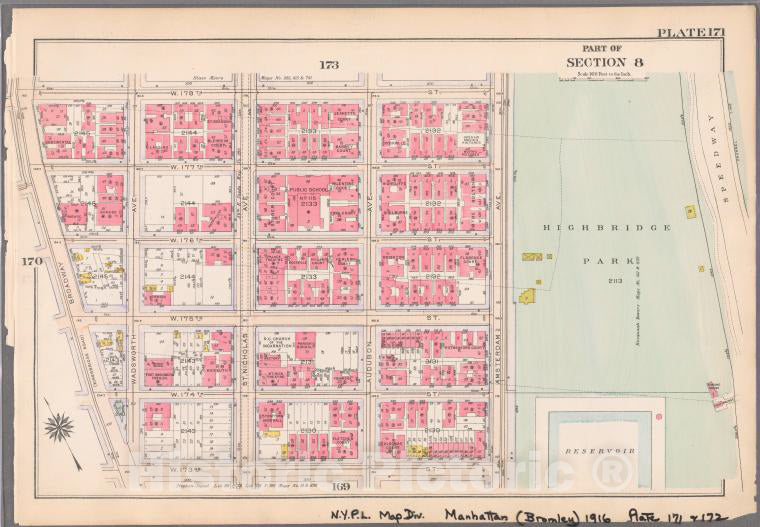 Historic 1916 Map - Plate 171: [Bounded By W. 178Th Street, Amsterdam Avenue (Highbr