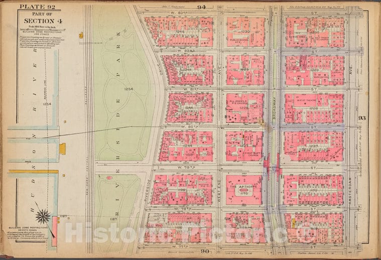 Historic 1921 Map - Plate 92: [Bounded By W. 83Rd Street, Amsterdam Avenue, W. 77Th