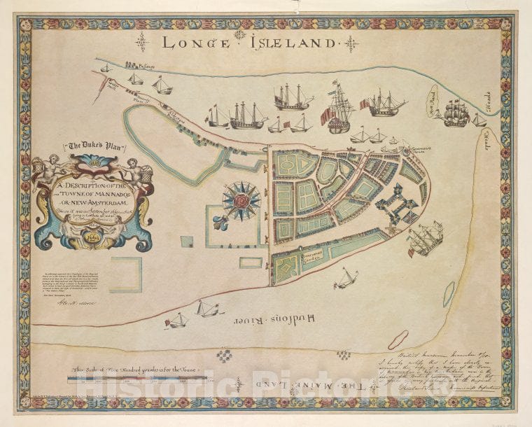 • .Historic Map - 1664 A Description Of The Towne Of Mannados Or New Amsterdam : As It Was In September 1661 - Vintage Wall Art