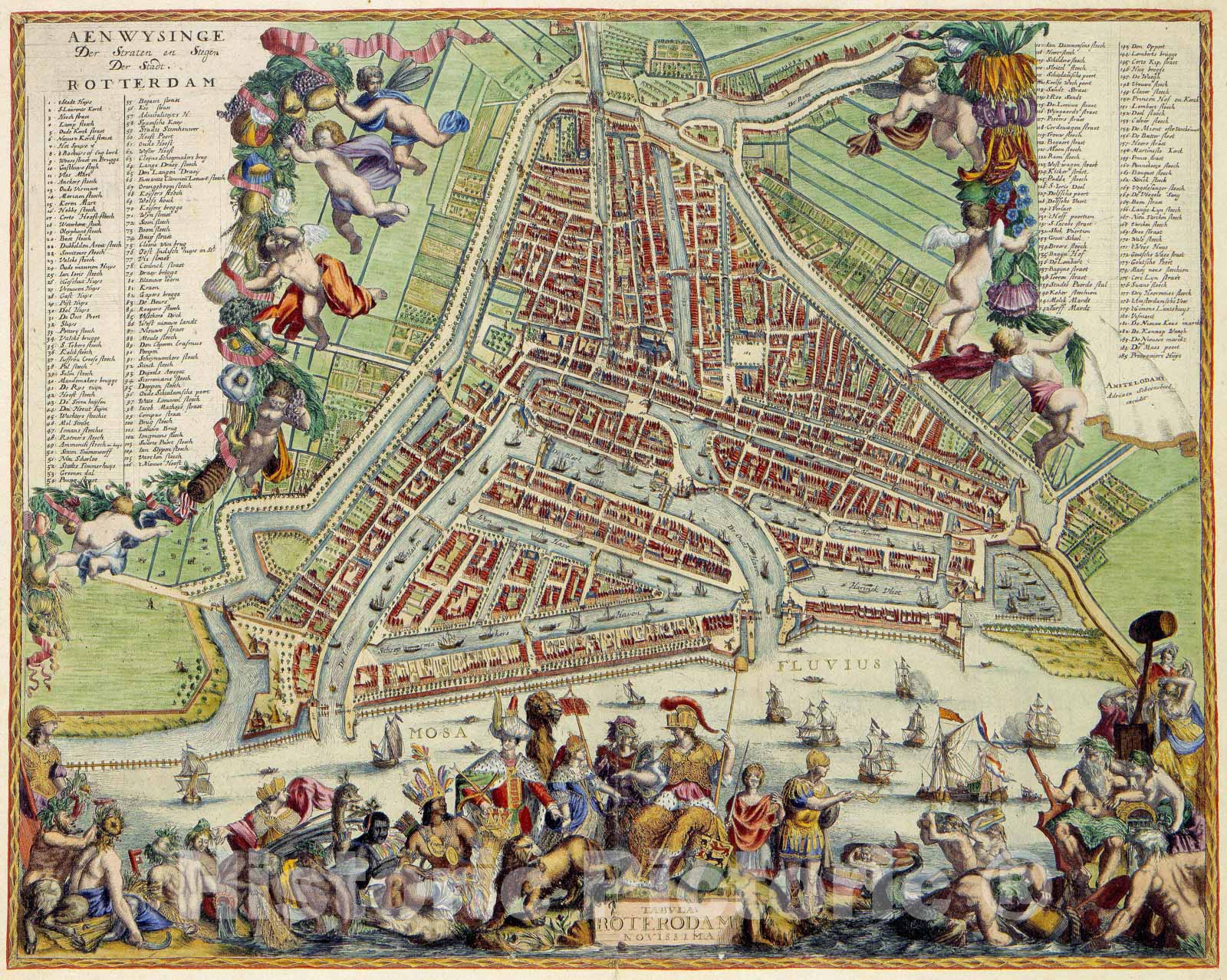 Historic Map - Aenwysinge Der Straten en Stegen Der Stadt Rotterdam/Tabula Roterodami Novissima/Plan of Rotterdam,Amsterdam by Carol Allard, 1690 - Vintage Wall Art