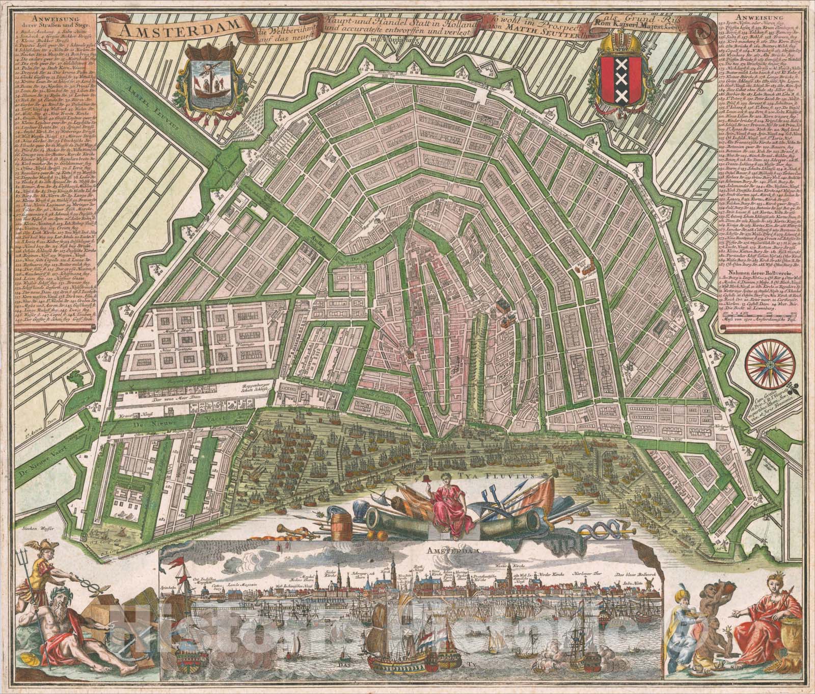 • Historic Map : Amsterdam die Weltberuhmte Haupt-und Handel Statt in Holland auf das neuest und accurateset eintworffen und verlegt, c1730, Matthaus Seutter, Vintage Wall Art