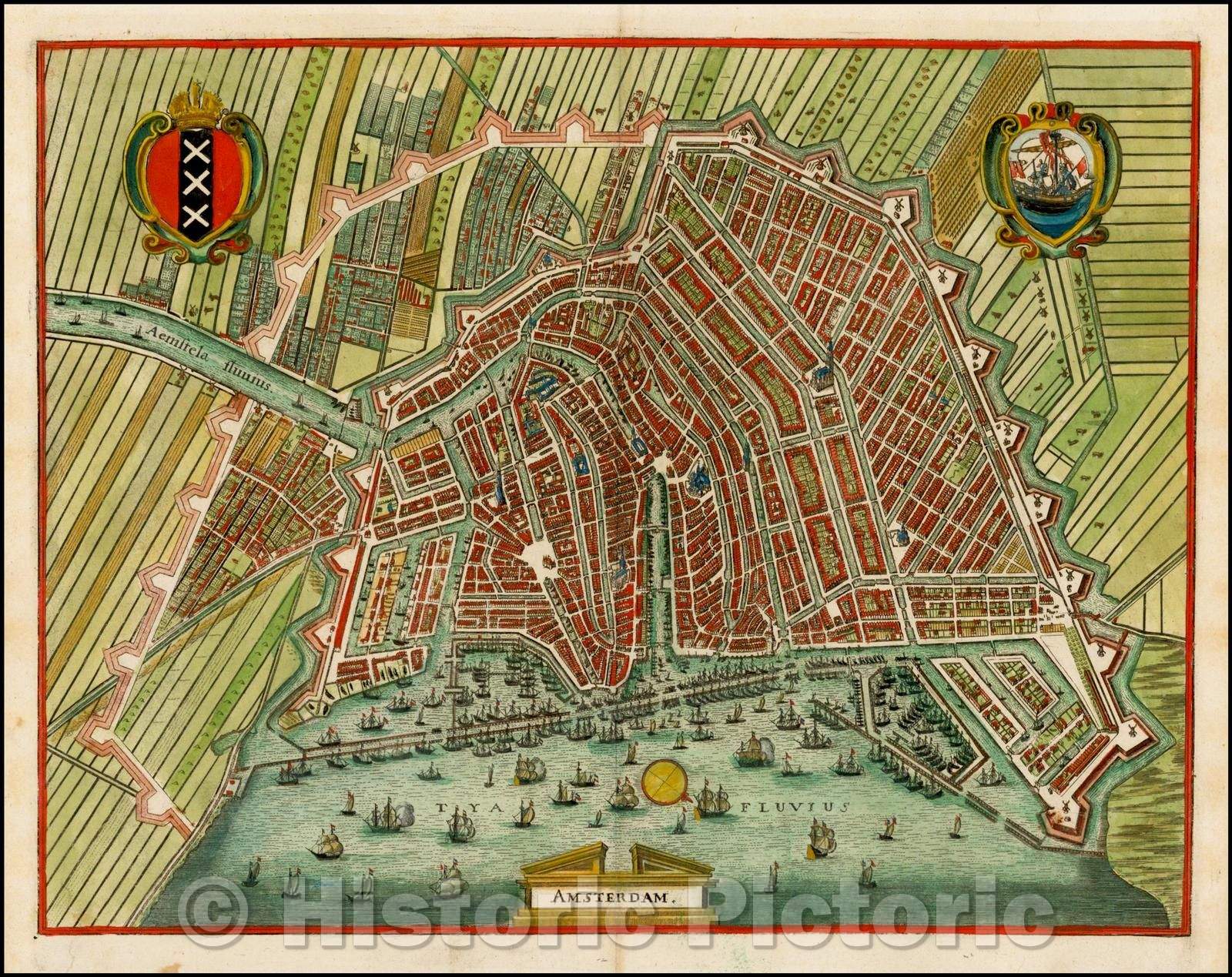 Historic Map - Amsterdam, Netherlands, 1636, Matthaus Merian v2