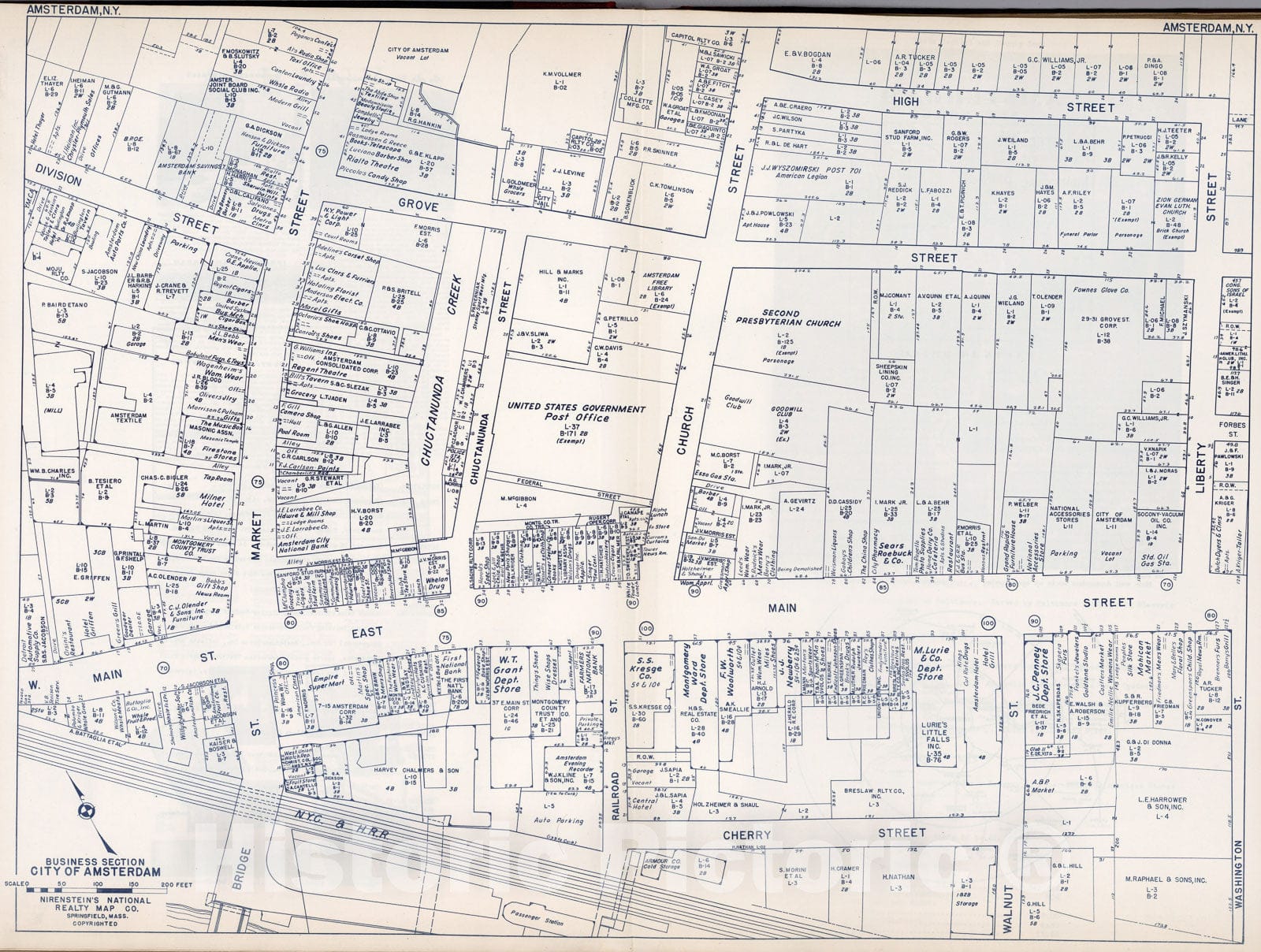• .Historic Map : Business Section, City of Amsterdam (New York)., 1947, Vintage Wall Decor