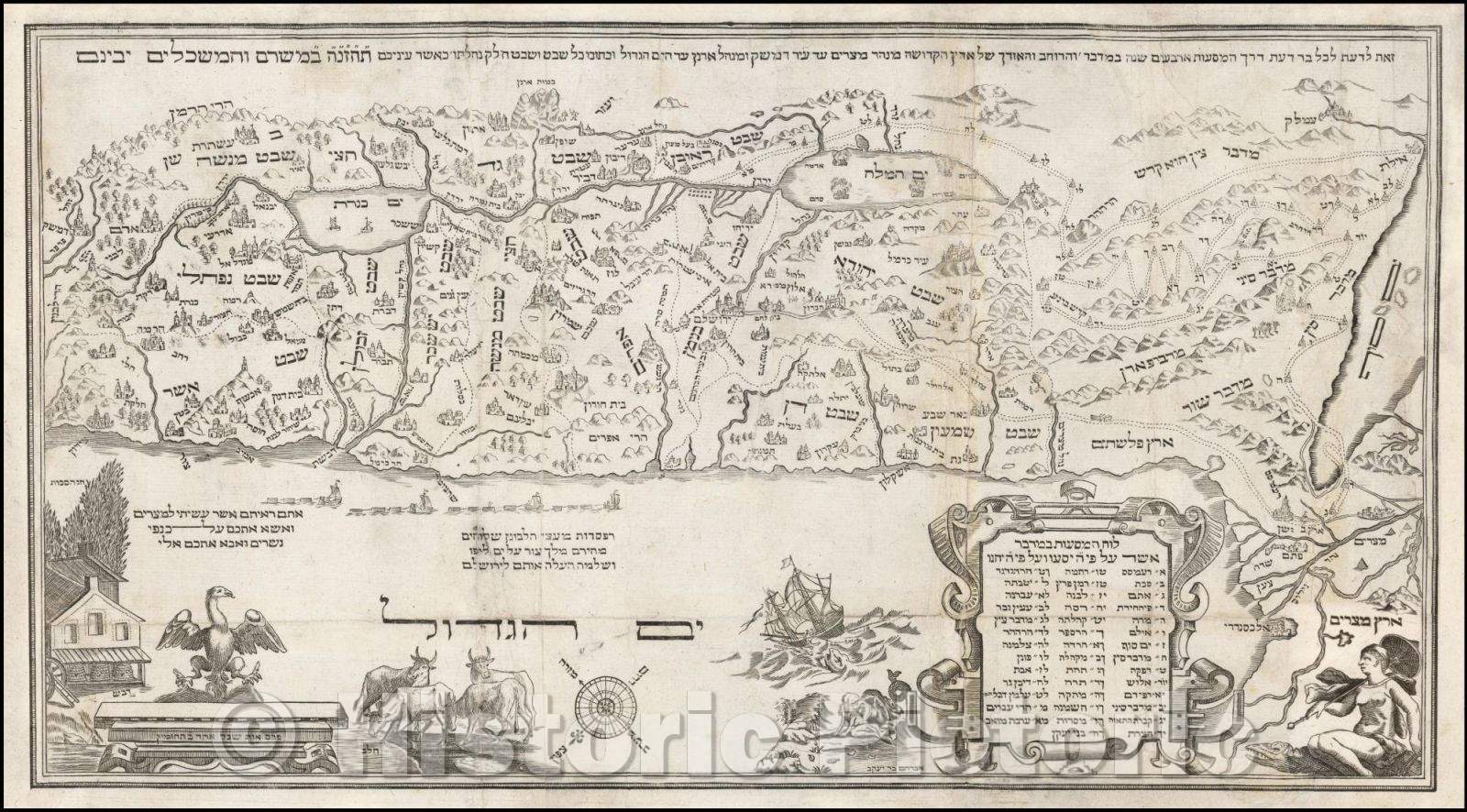 Historic Map - Holy Land, Amsterdam Haggadah Map and Book, 1695, Abraham Bar Yaaqov - Vintage Wall Art