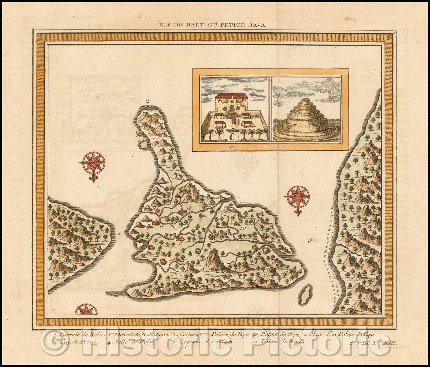 Historic Map - Ile de Baly ou Petite Java/Map of Bali, published in Amsterdam by Jacob Van Schley, 1770, J.V. Schley - Vintage Wall Art