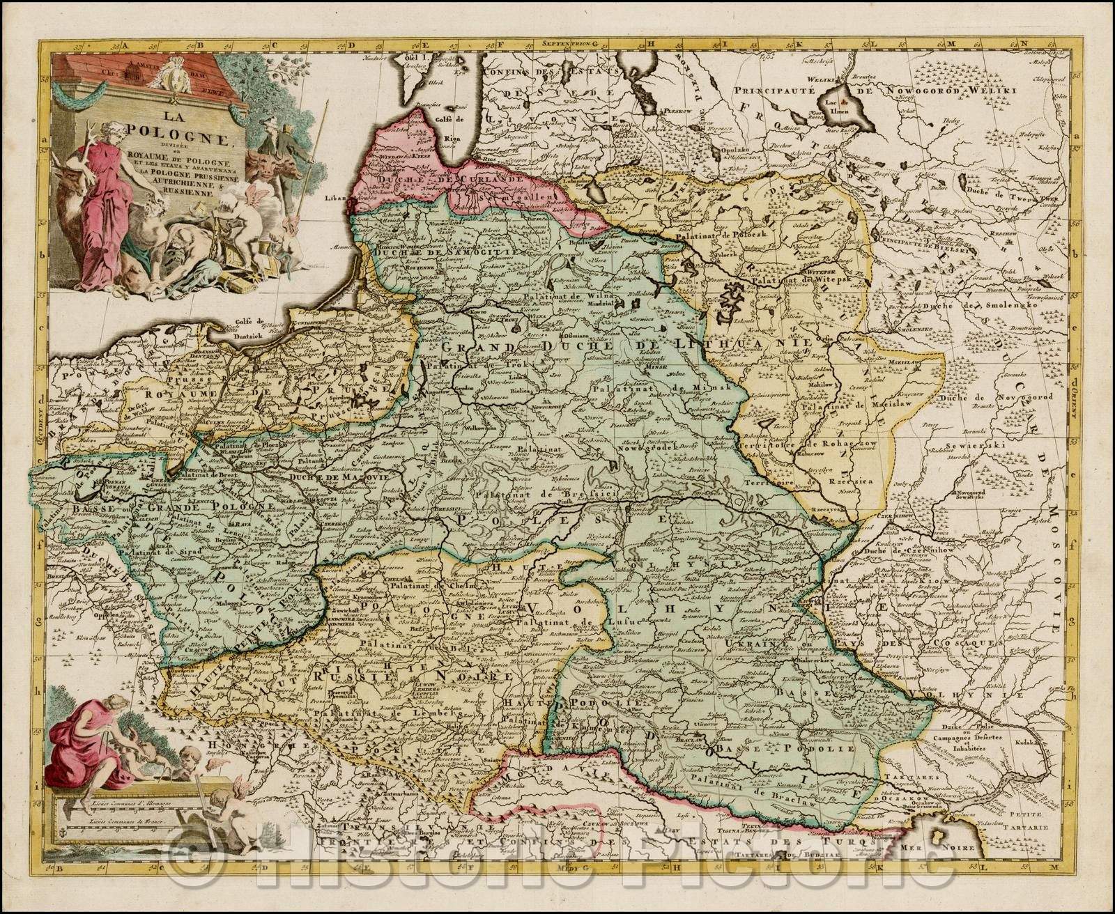 Historic Map - La Pologne Divisee en Royaume de Pologne et les etats/Map of Poland, Russia, Prussia and Austra, published by Jan Elwe in Amsterdam, 1792 - Vintage Wall Art