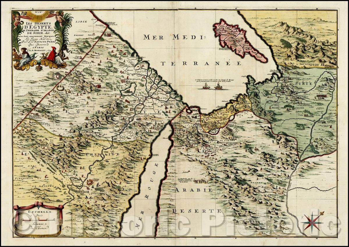 Historic Map - Les Deserts D'Egypte De Thebaide D'Arabie, De Sirie/Map of Egypt, Cyprus, Syria and the Holy Land, published by Jaillot in Amsterdam, 1693 - Vintage Wall Art