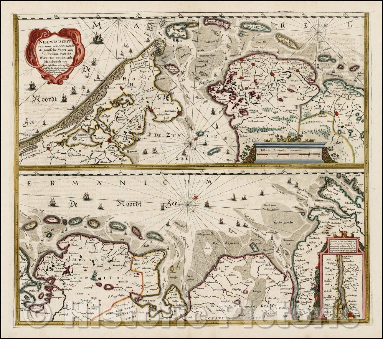 Historic Map - Nieuwe Caerte Waerinne Vertoont wordt de Gantsche Vaert van Amsterdam over, 1634 - Vintage Wall Art