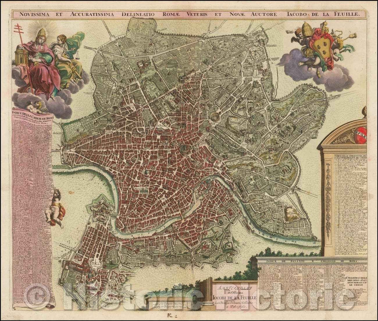 • .Historic Map - Novissima et Accuratissima Delineatio Romae Veteris et Novae/Plan of Rome, published in Amsterdam by Jacob de la Feuille, 1690 - Vintage Wall Art