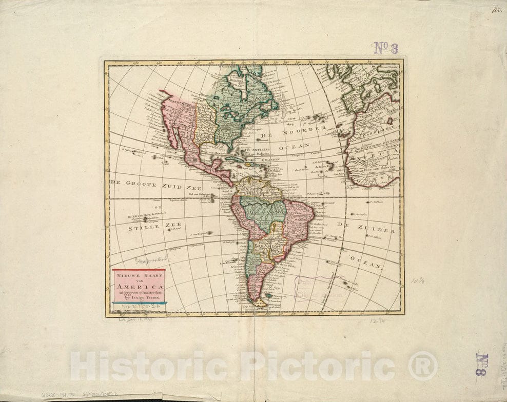 Historical Map, 1744-1769 Nieuwe kaart van America uitgegeven te Amsterdam, Vintage Wall Art