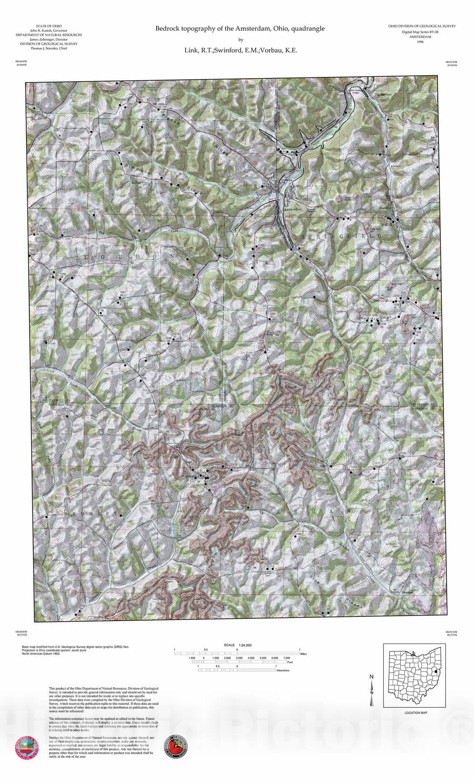 Map : Bedrock topography of the Amsterdam, Ohio, quadrangle, 1996 Cartography Wall Art :