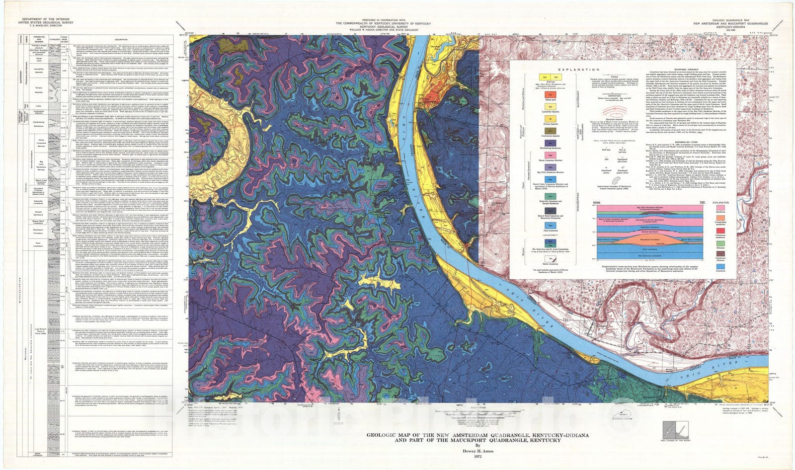 Map : Geologic map of the New Amsterdam quadrangle, Kentucky-Indiana and part of the Mauckport quadrangle, Kentucky, 1972 Cartography Wall Art :