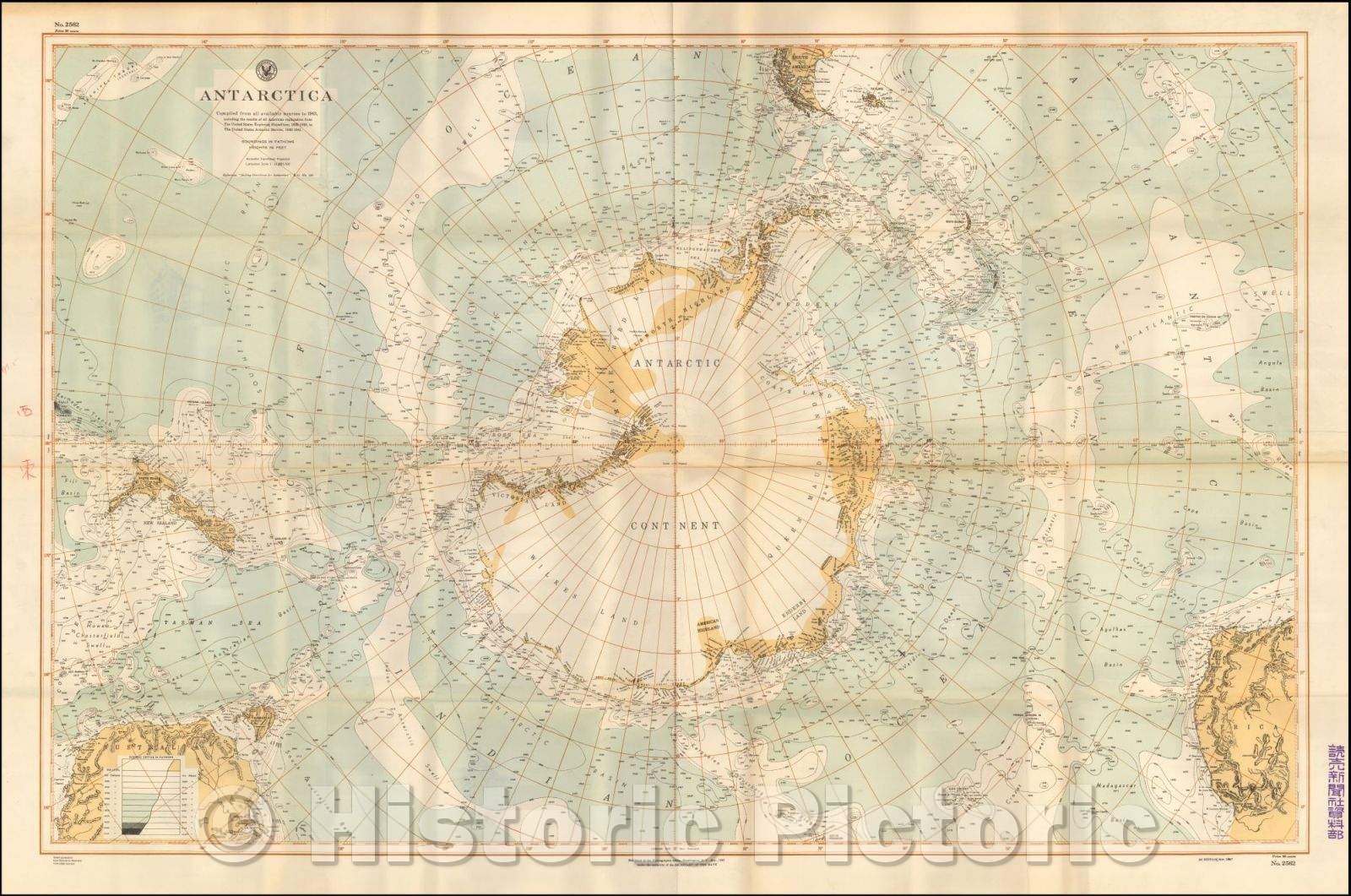 Historic Map - Antarctica, 1943, U.S. Hydrographical Office - Vintage Wall Art