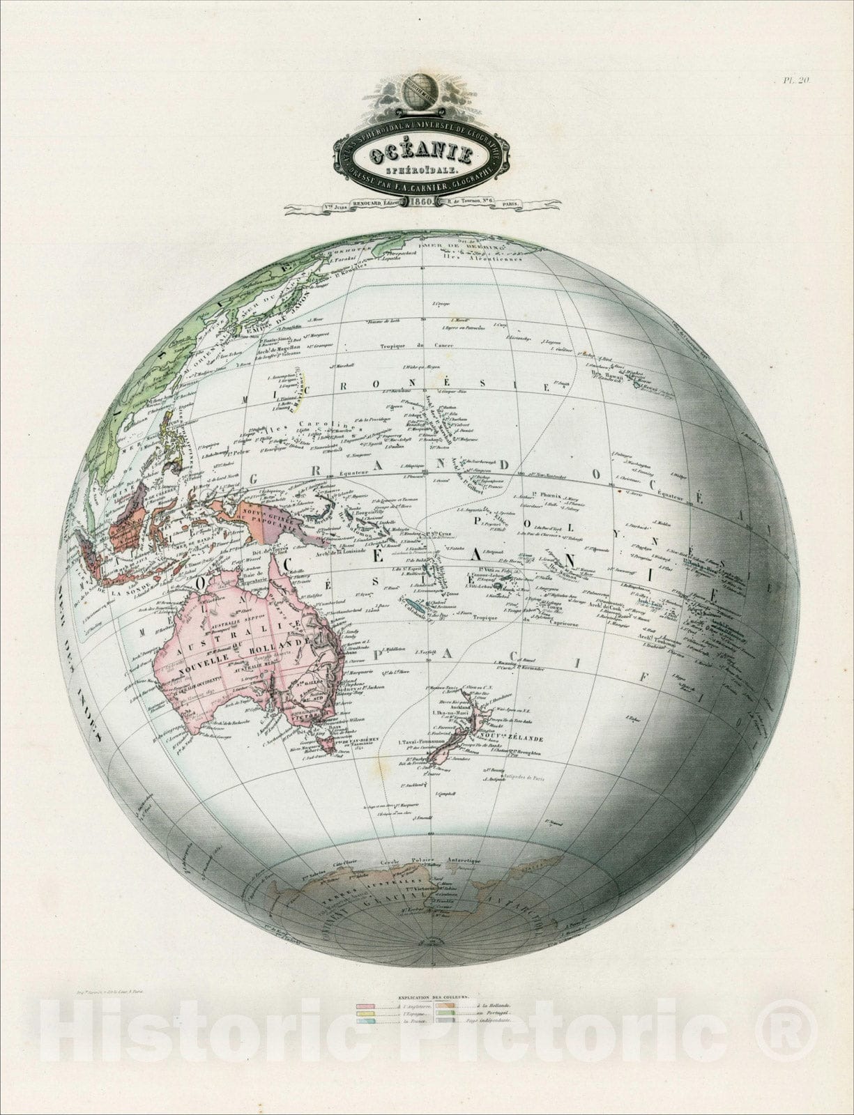 Historic Map : Oceanie Spheroidale, 186 [with Antarctica], 1860, F.A. Garnier, Vintage Wall Art
