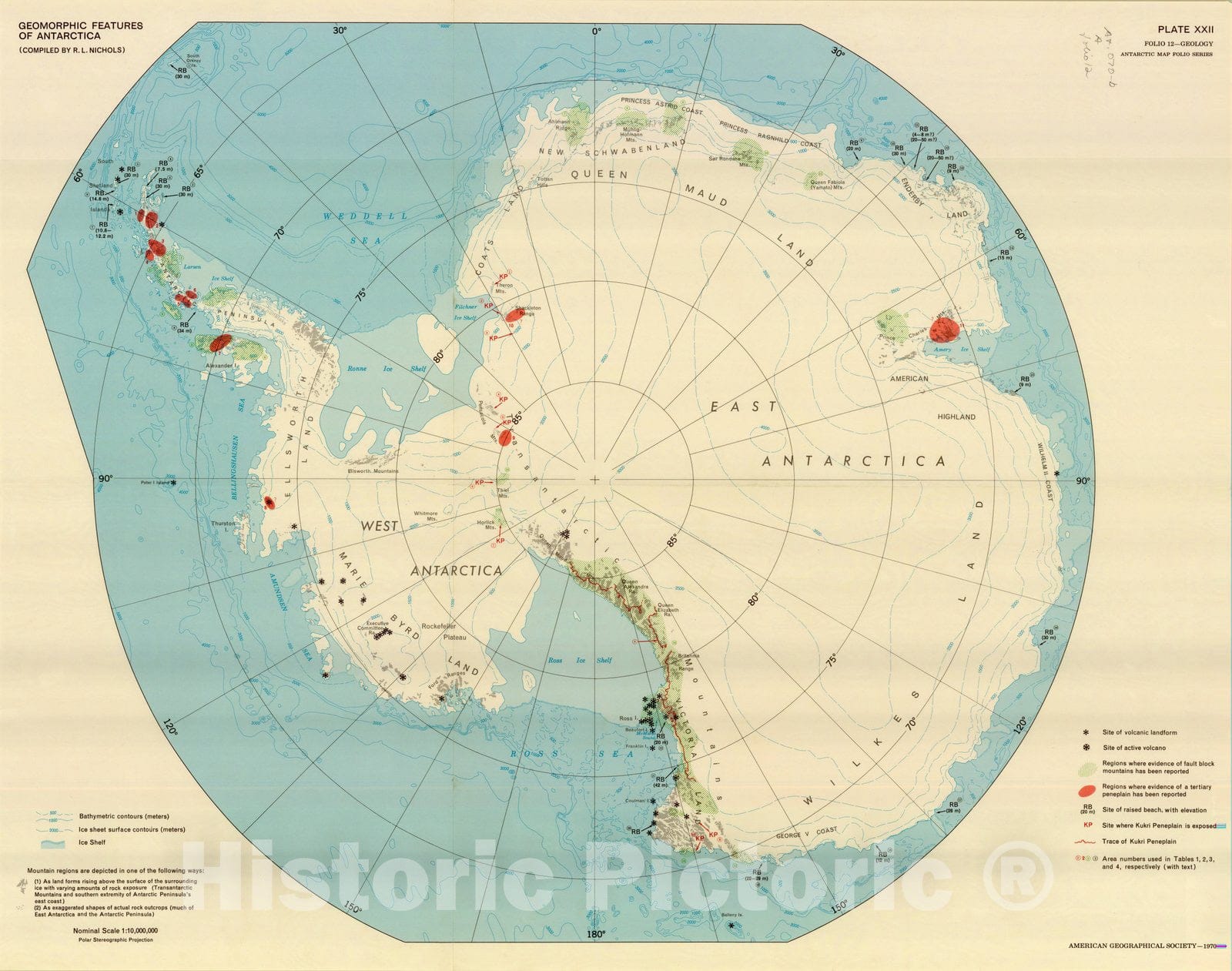 Map : Antarctic map folio series Geomorphic Features of Antarctica , Antarctic map folio series , Antique Vintage Reproduction