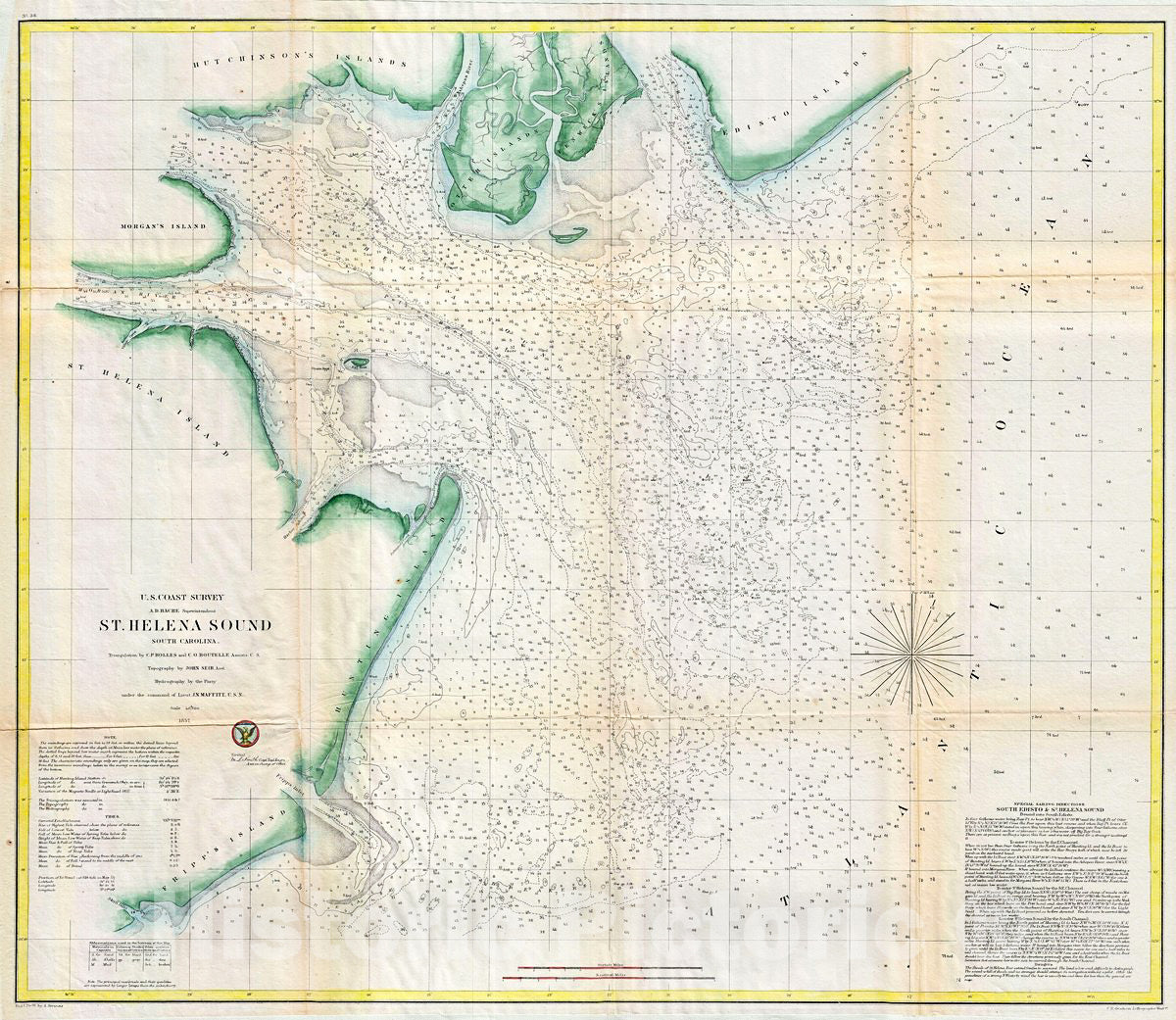 Historic Map : U.S. Coast Survey Antique Map or Chart of St. Helena Sound, South Carolina, 1857, Vintage Wall Art
