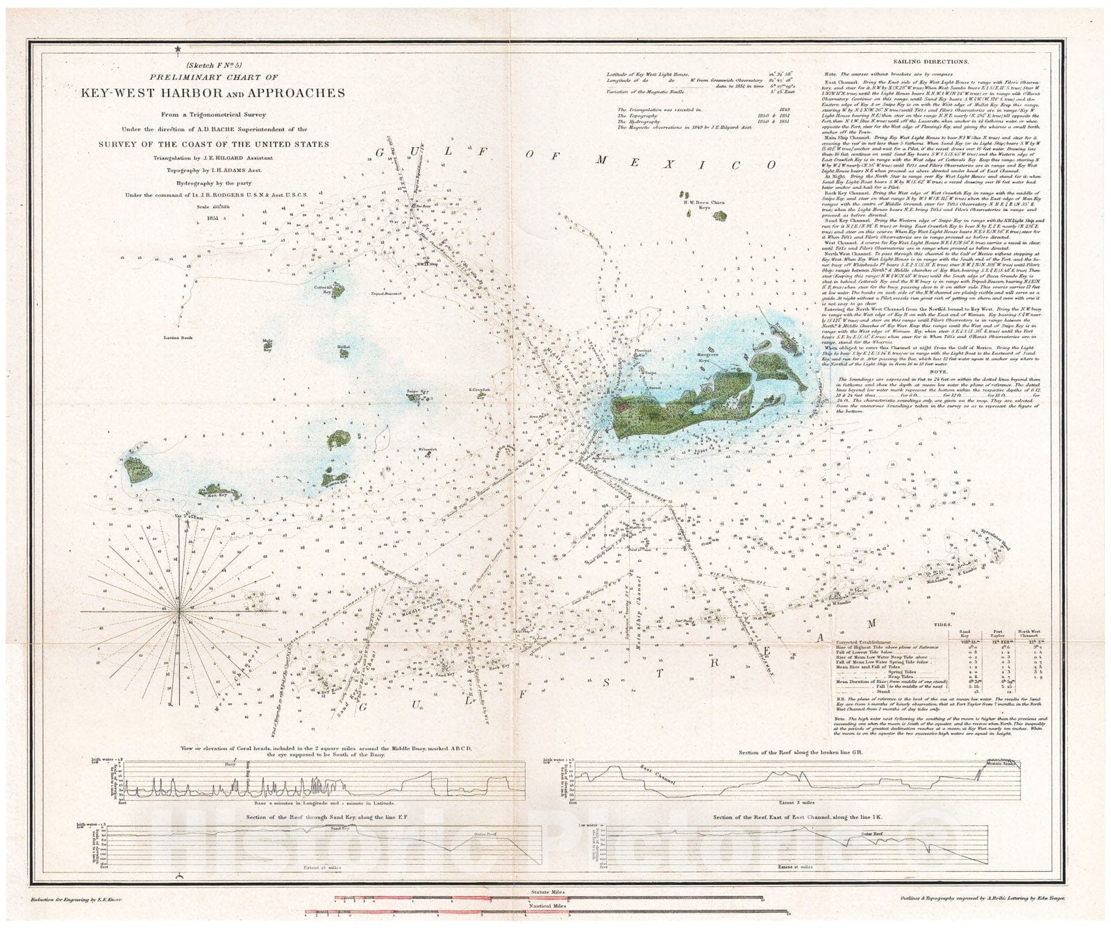Historic Map : U.S. Coast Survey Chart or Antique Map of Key West and Vicinity, Florida, 1851, Vintage Wall Art