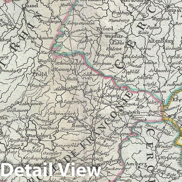 This is a scarce 1757 map of the German Empire by Robert de Vaugondy. It covers from Dunkirk in France east to Elblag in Poland and south as far as the Gulf of Venice and Geneva, to include the modern day countries of Germany, Belgium, Luin xembourg, the Netherlands, Switzerland, Czech republic, Slovenia, Austria as well as parts of Italy, Poland, Hungary and Slovakia. Various postal routes are noted throughout including towns and cities along the routes. Even offers some offshore detail near Belgium and Holland. The Imperial Circles, devised by the Holy Roman Empire to administer, tain x and defend the Empire (covering most of what is now Central Europe) are also identified.