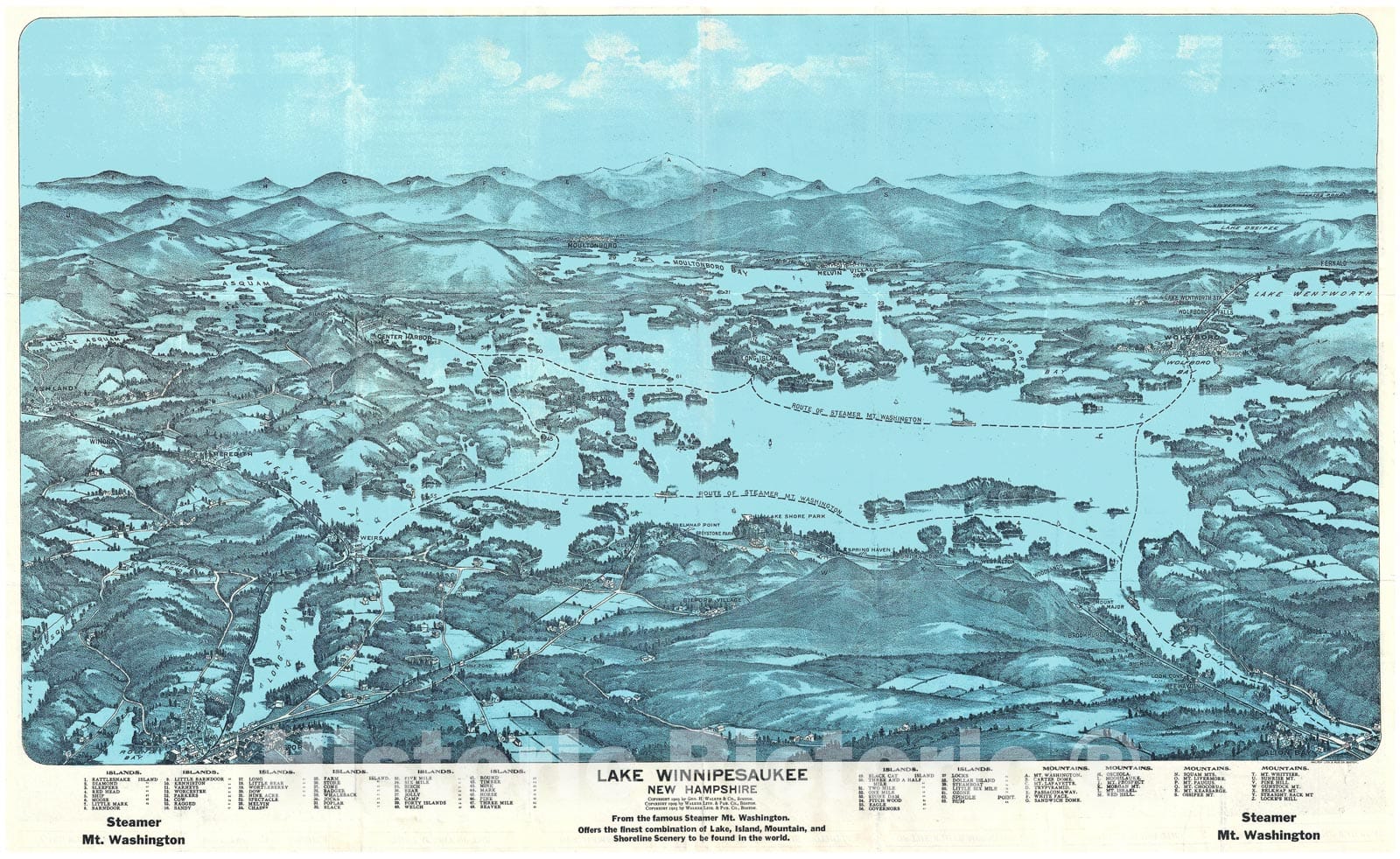 Historic Map : Walker Antique Map and View of Lake Winnipesaukee, New Hampshire, 1903, Vintage Wall Art