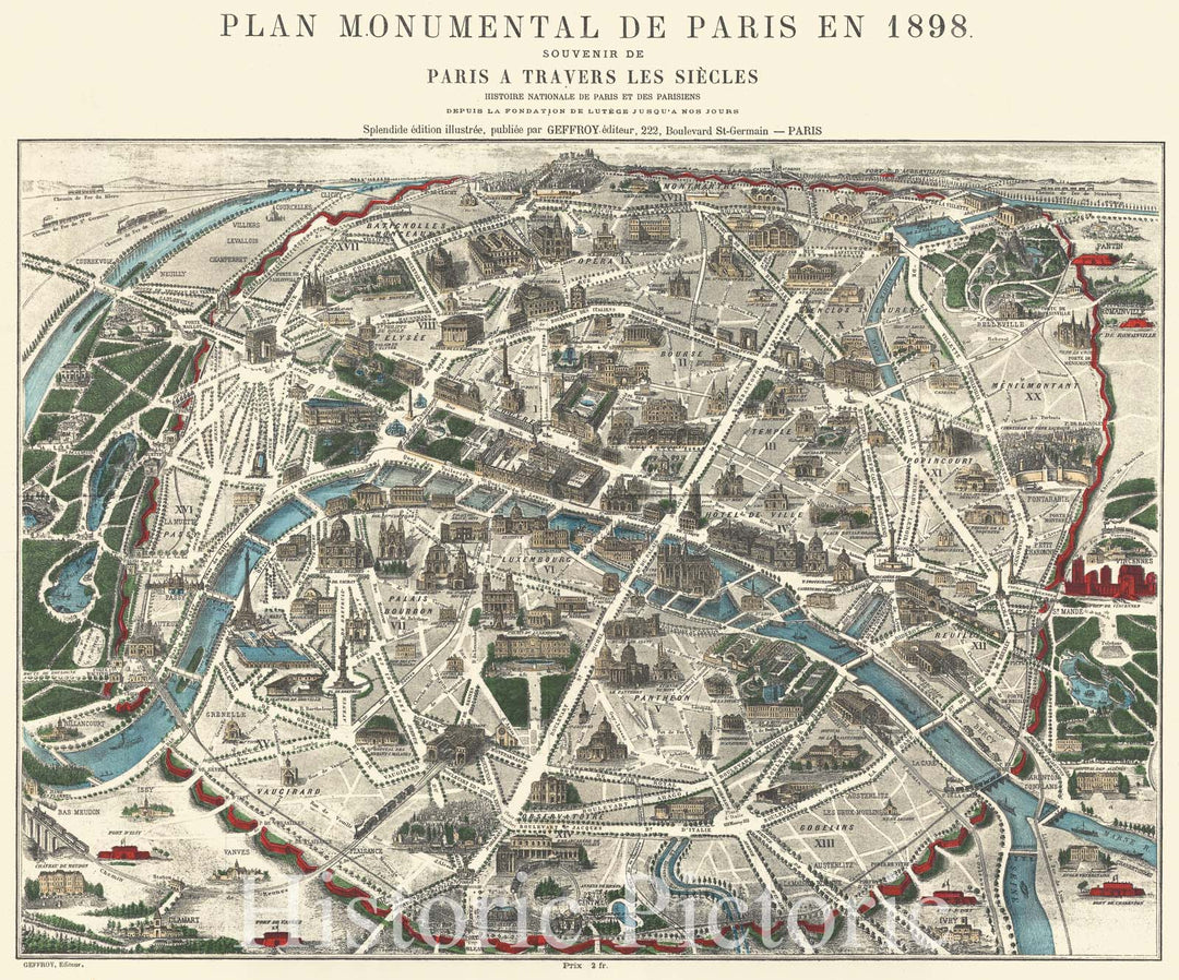 Historic Map : Geffory Monument Antique Map of Paris, 1898, Vintage Wall Art