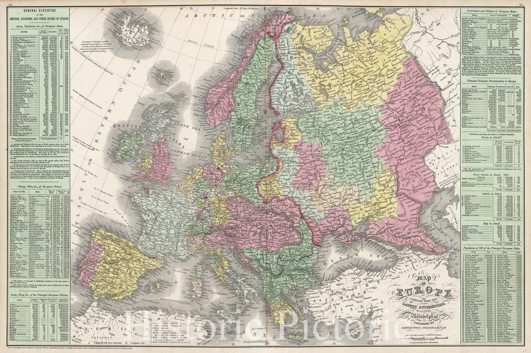Historic Map : Mitchell Antique Map of Europe, 1854, Vintage Wall Art