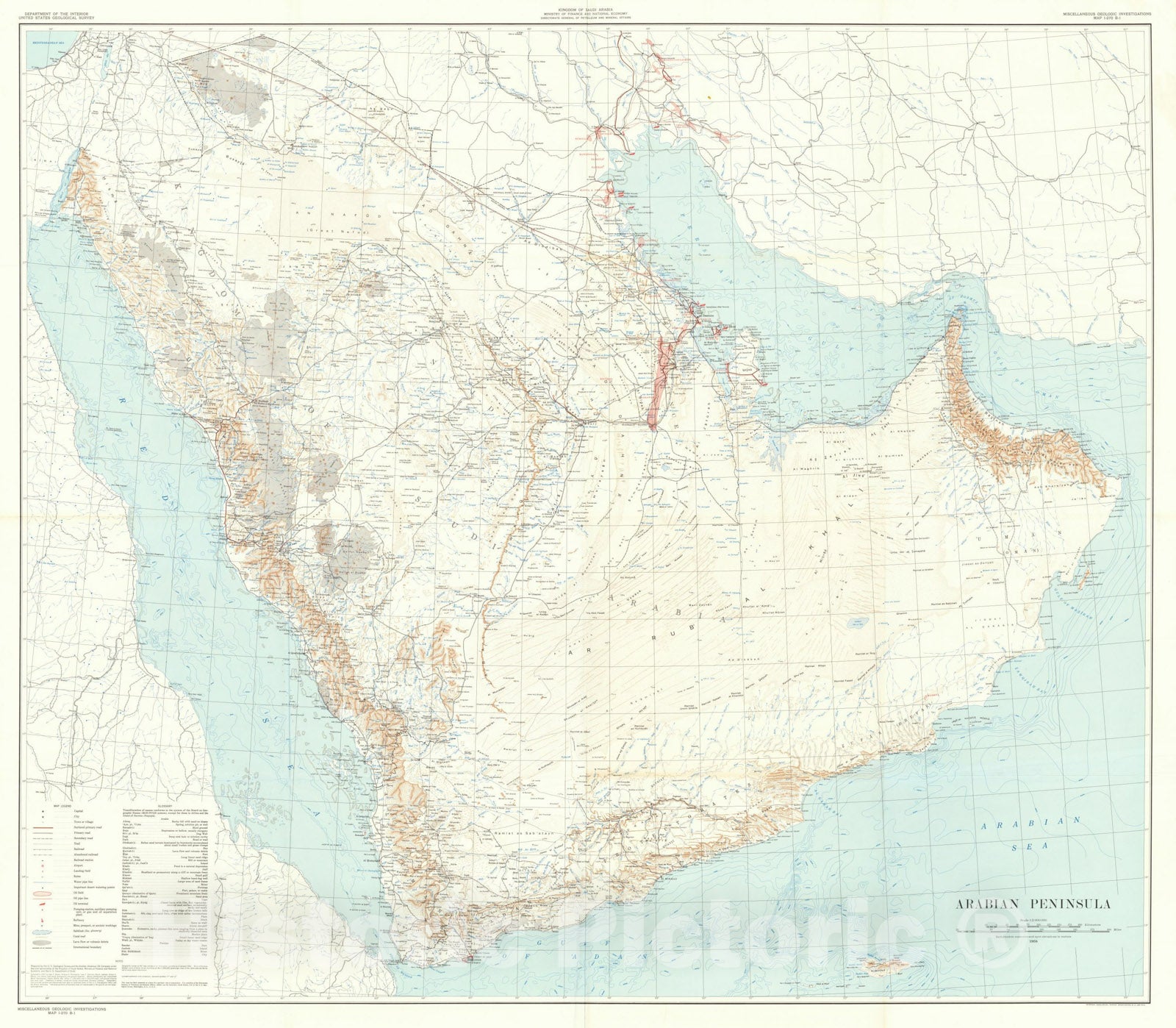 • .Historic Map : Arabian Peninsula, 1958, Directorate General of Petroleum & Mineral Affairs, v2, Vintage Wall Art