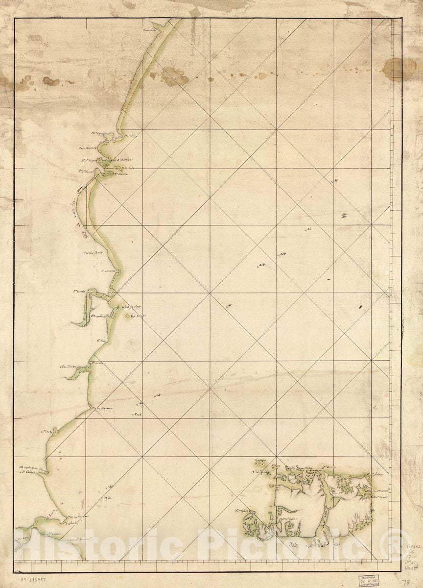 Historic 1700 Map - Map Showing Coast of Argentina from 42S to 53S (Chubut River to Strait of Magellan Including Falkland Islands)