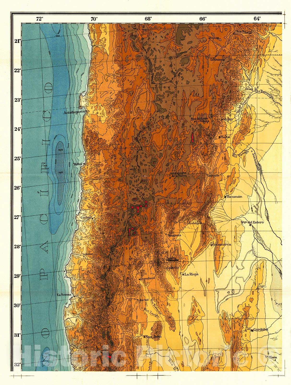 Historic Map : 1930 Mapa Hipsometrico de la Republica Argentina y Regiones Limitrofes : Vintage Wall Art