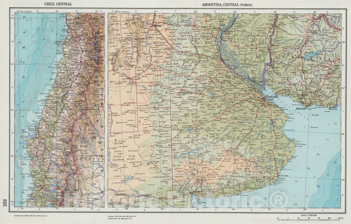1967 232. Chile, Central; Argentina, Central (Pampa). The World Atlas.