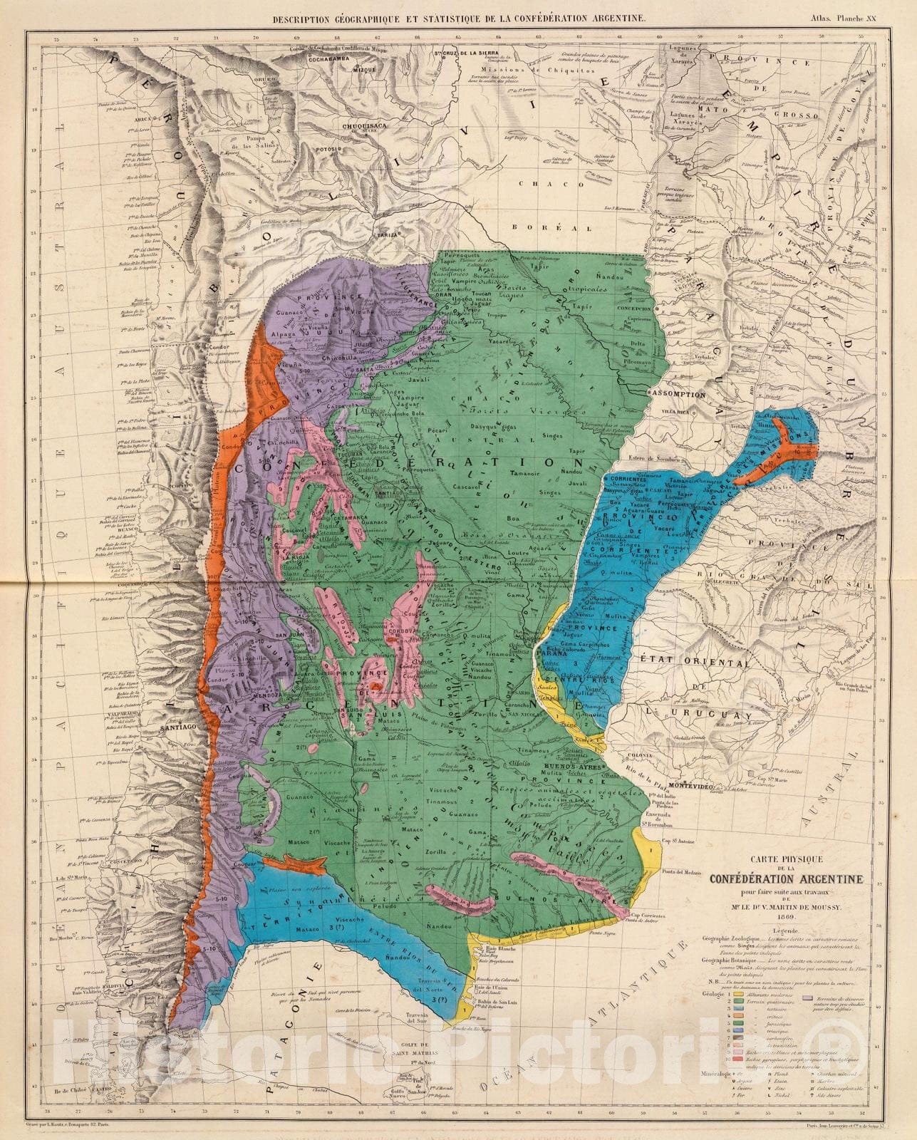 Historic Map : Argentina, 1873 Carte physique de la Confederation Argentine. , Vintage Wall Art