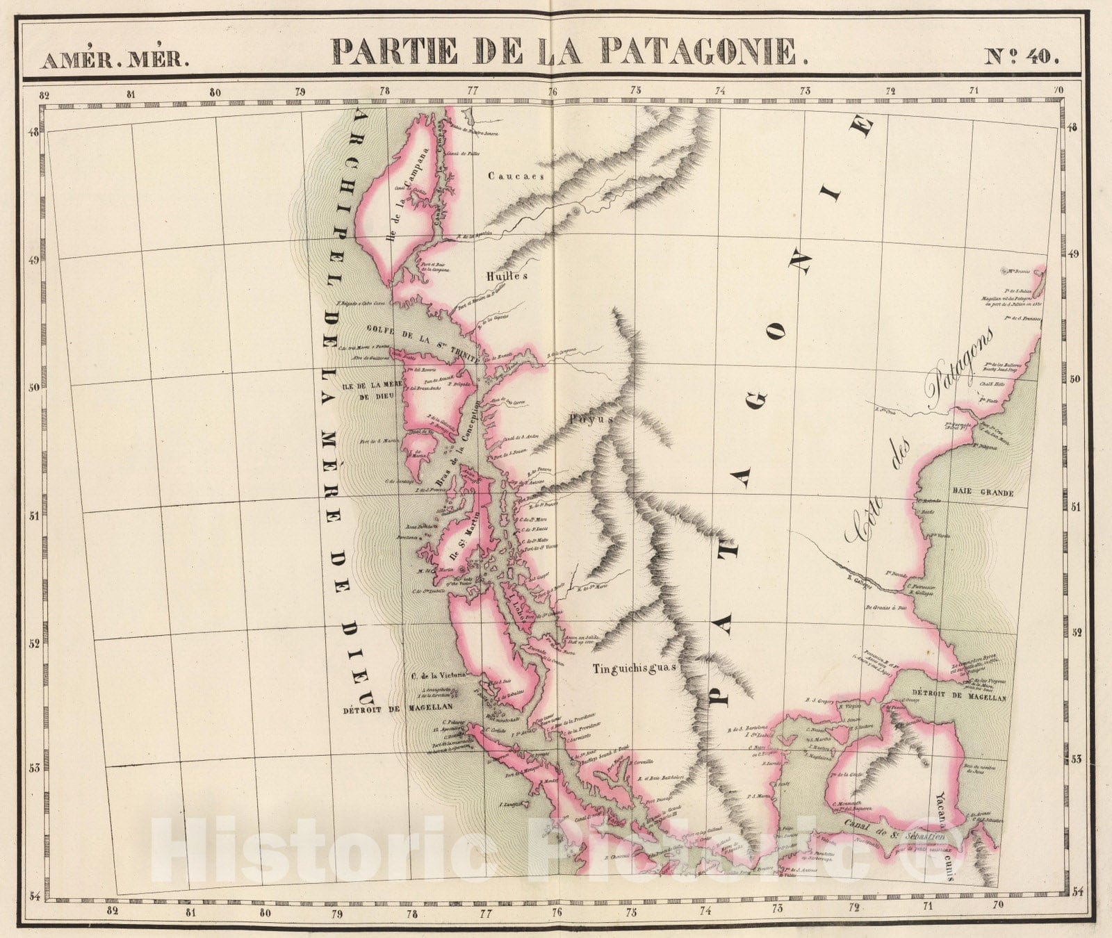 Historic Map : Argentina; Chile, Magellan, Strait of (Chile and Argentina) 1827 Partie, la Patagonie. Amer. Merid. 40. , Vintage Wall Art