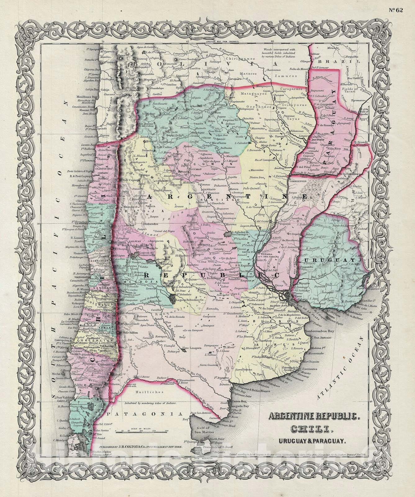 Historic Map : Argentina, Chile, Paraguay and Uruguay, Colton, 1856, Vintage Wall Art