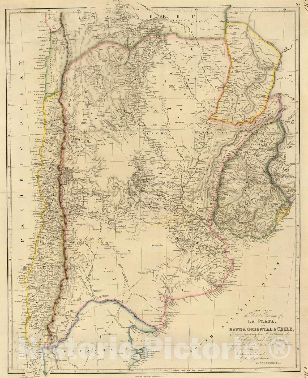• Historic Map : Argentina; Chile, , South America 1834 United Provinces of La Plata, Banda Oriental, Chile. , Vintage Wall Art