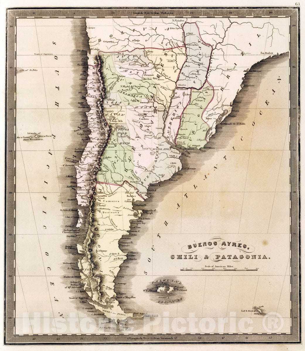 Argentina; Chile, , South America 1848 Buenos Ayres, Chili & Patagonia. , Vintage Wall Art