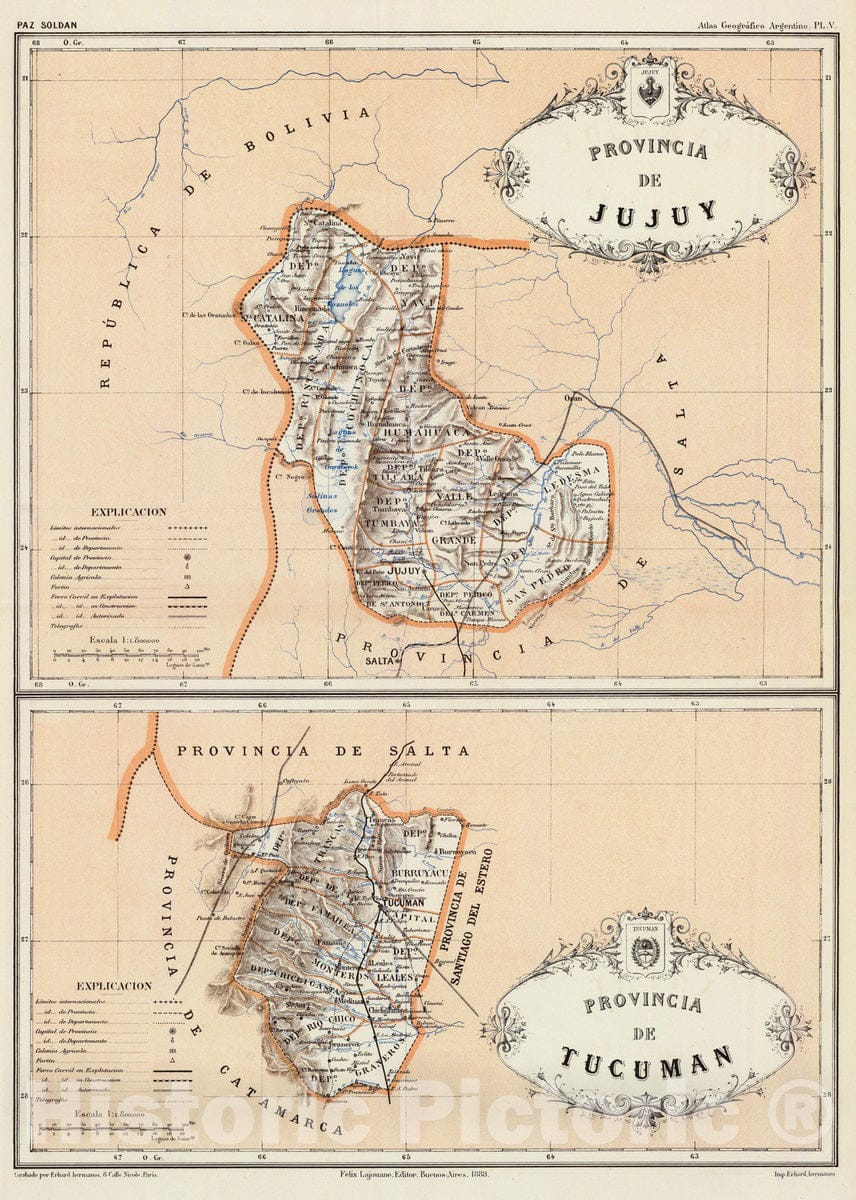 Argentina, Jujuy (Argentina : Province) 1888 Provincias de Jujuy y Tucuman. , Vintage Wall Art