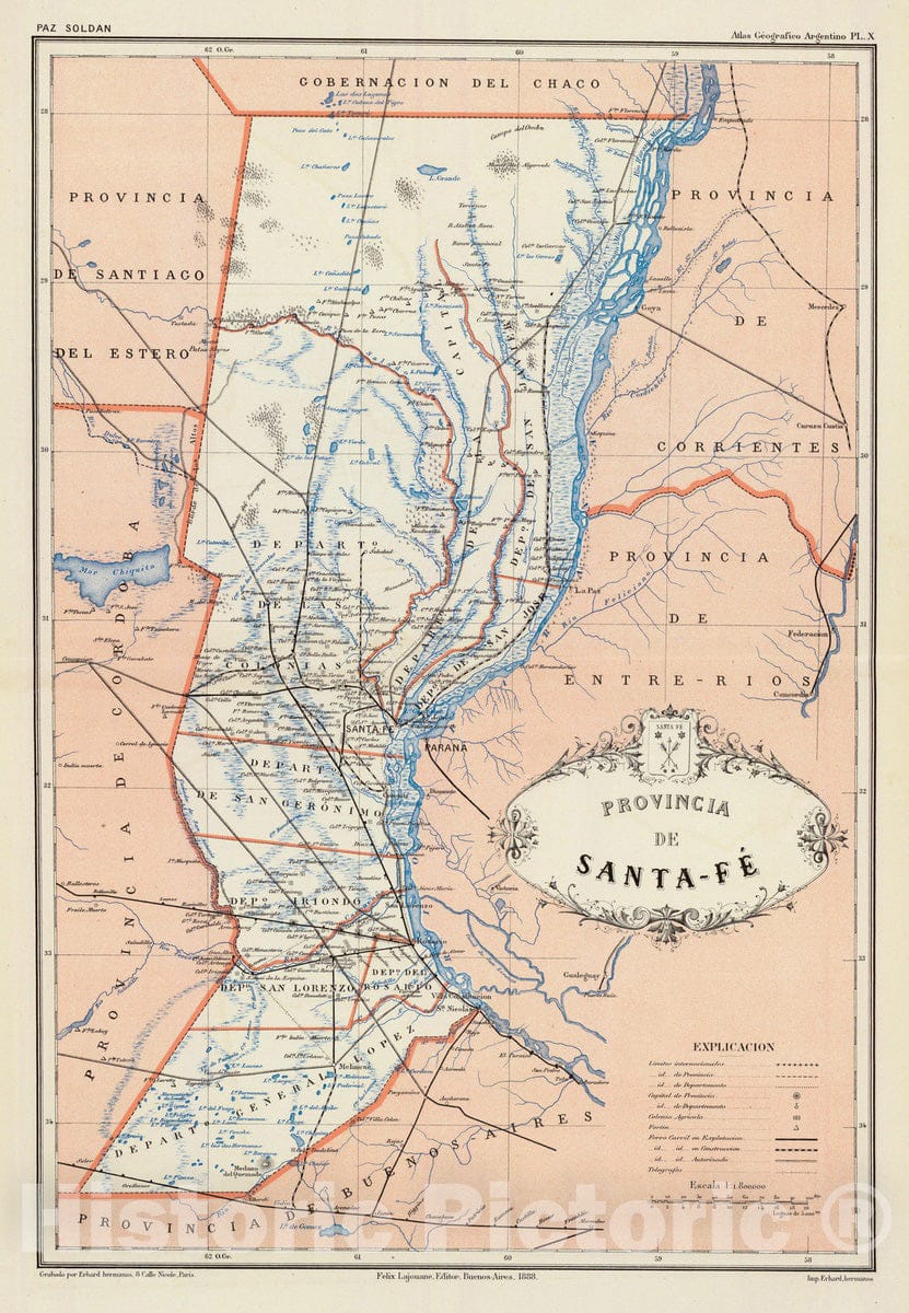 Argentina, Santa Fe (Argentina : Province) 1888 Provincia de Santa-Fe. , Vintage Wall Art