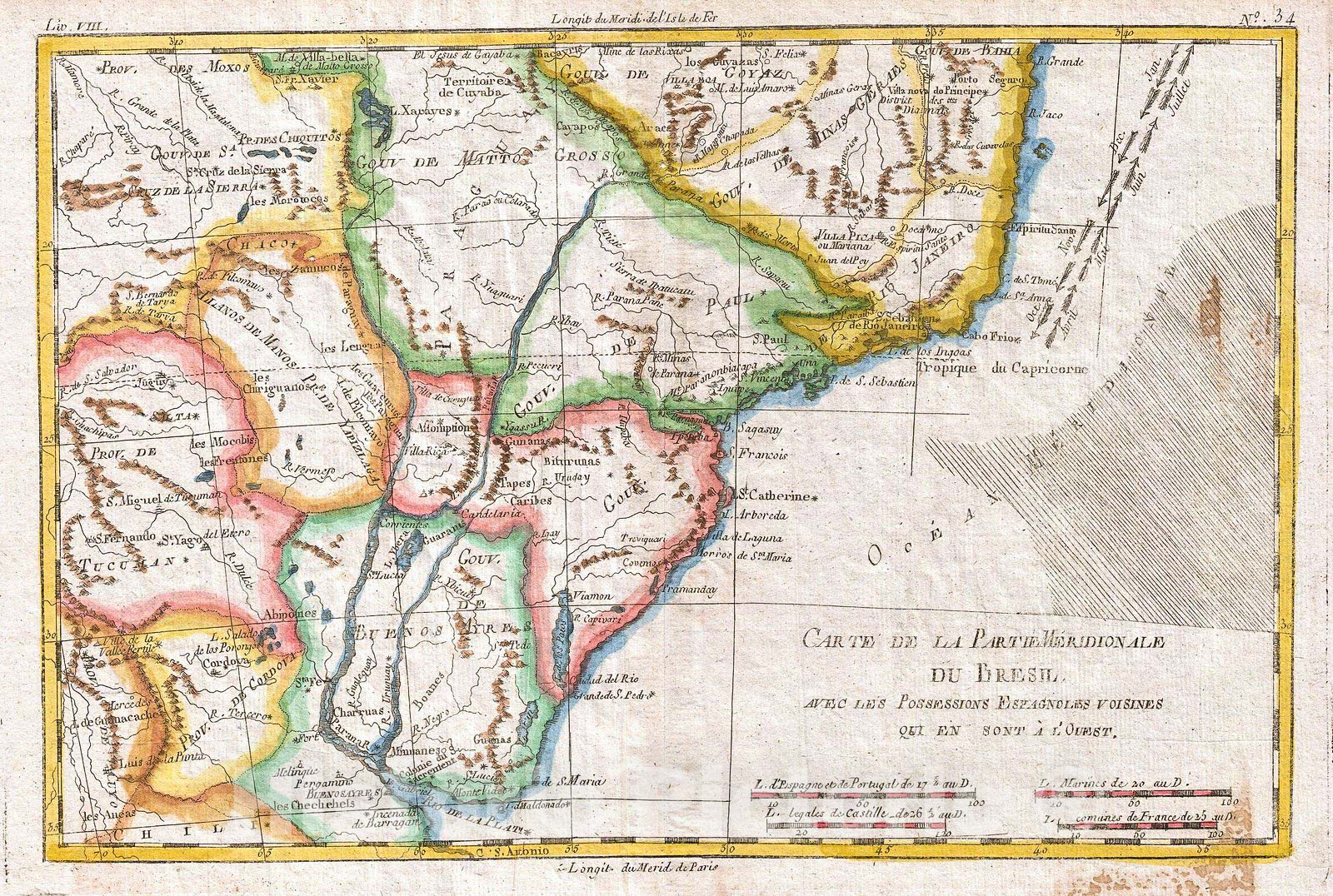 Historic Map : Raynal and Bonne Map of Southern Brazil, Northern Argentina, Uruguay and Paraguay, 1780, Vintage Wall Art