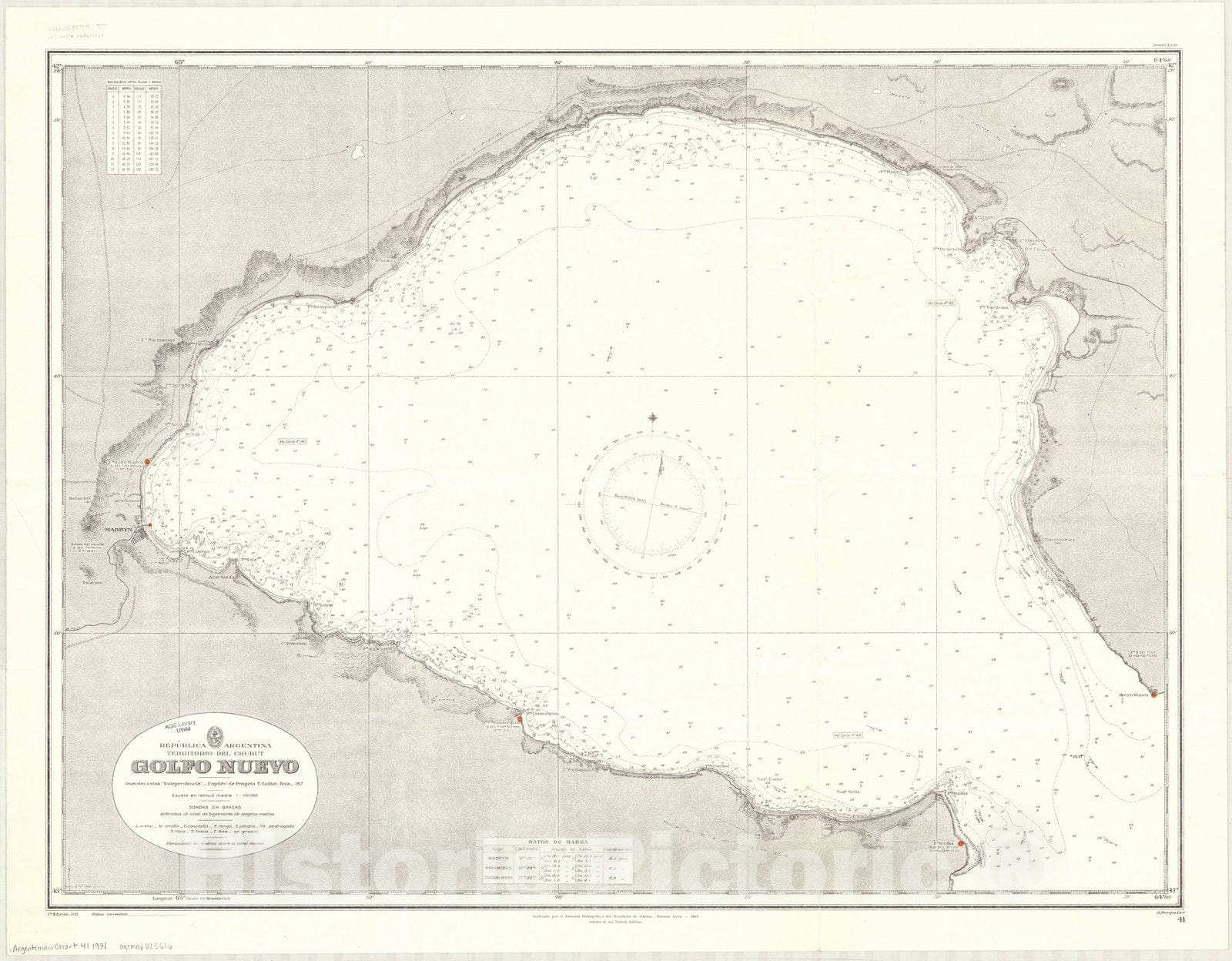 Map : Argentina coast 1931, Republica Argentina, Territorio del Chubut, Golfo Nuevo , Antique Vintage Reproduction