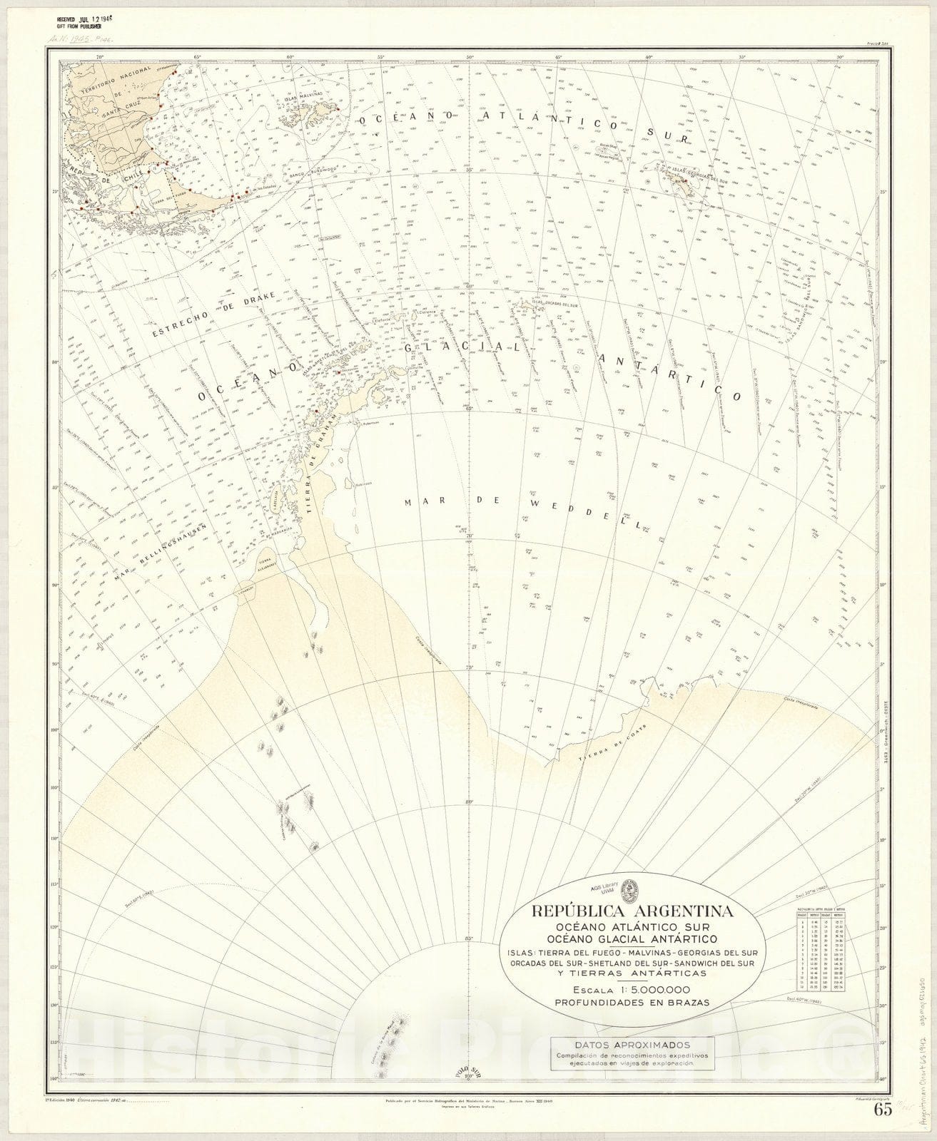 Republica Argentina, Oceano Atlantico Sur, Oceano Glacial Antartico, Islas: Tierra del Fuego, Malvinas, Georgias del Sur, Orcadas del Sur, Shetland del Sur, Sandwich del Sur y Tierras Antarticas / publicado por el Servicio Hidrografico del Ministerio d