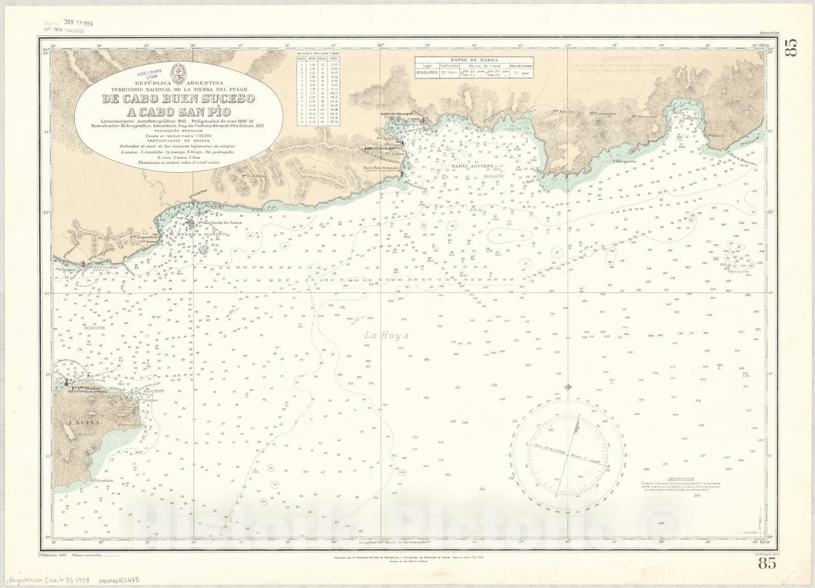 Map : Bahia Aguirre, Argentina 1953, Republica Argentina, Territorio Nacional de la Tierra del Fuego, de Cabo Buen Suceso a Cabo san Pio , Antique Vintage Reproduction