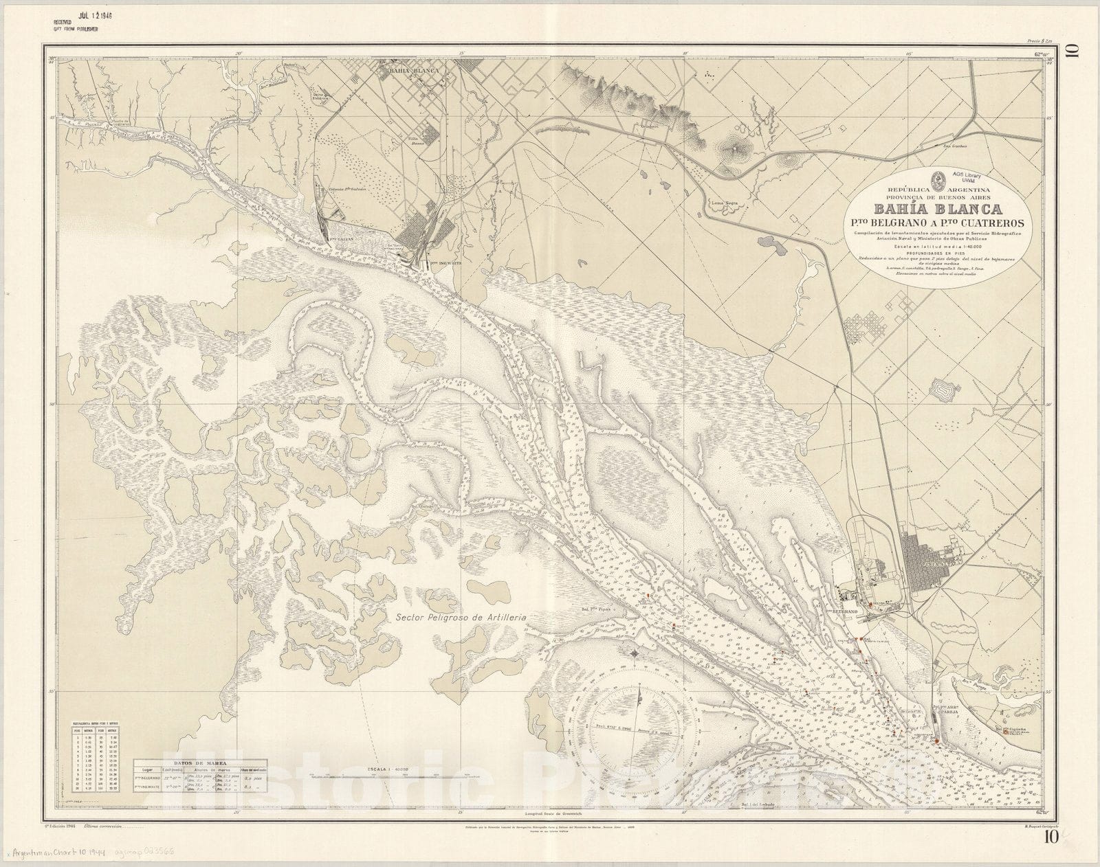 Map : Buenos Aires, Argentina 1944, Republica Argentina, Provincia de Buenos Aires, Bahia Blanca, Pto. Belgrano a Pto. Cuatreros , Antique Vintage Reproduction