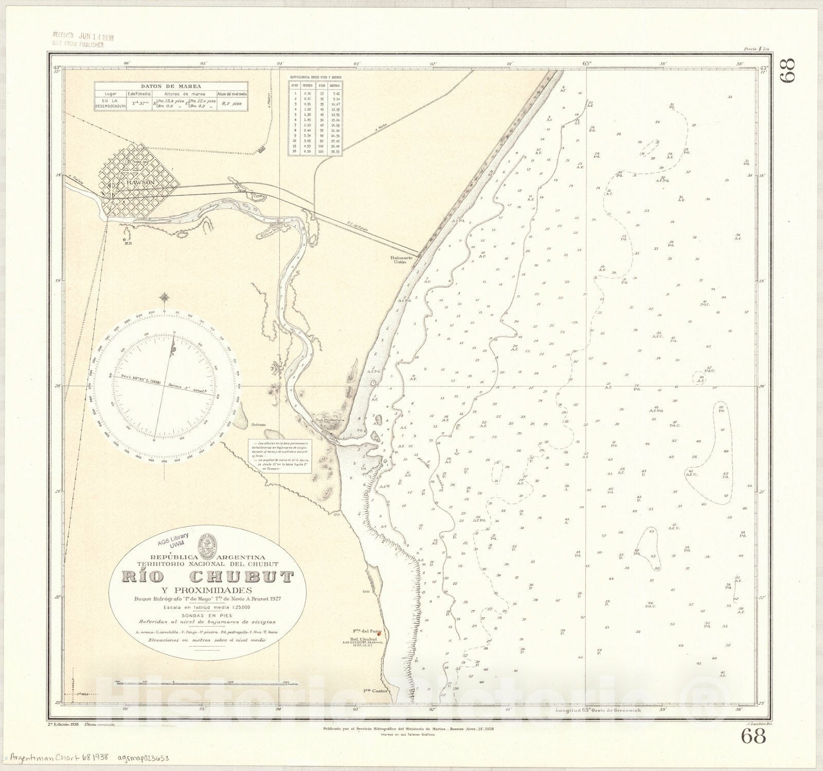 Republica Argentina, Territorio Nacional del Chubut, Rio Chubut y proximidades / Buque Hidrografico |"1' de Mayo|" Tte. de Navio A. Brunet 1927 ; publicado por el Servicio Hidrografico del Ministerio de Marina