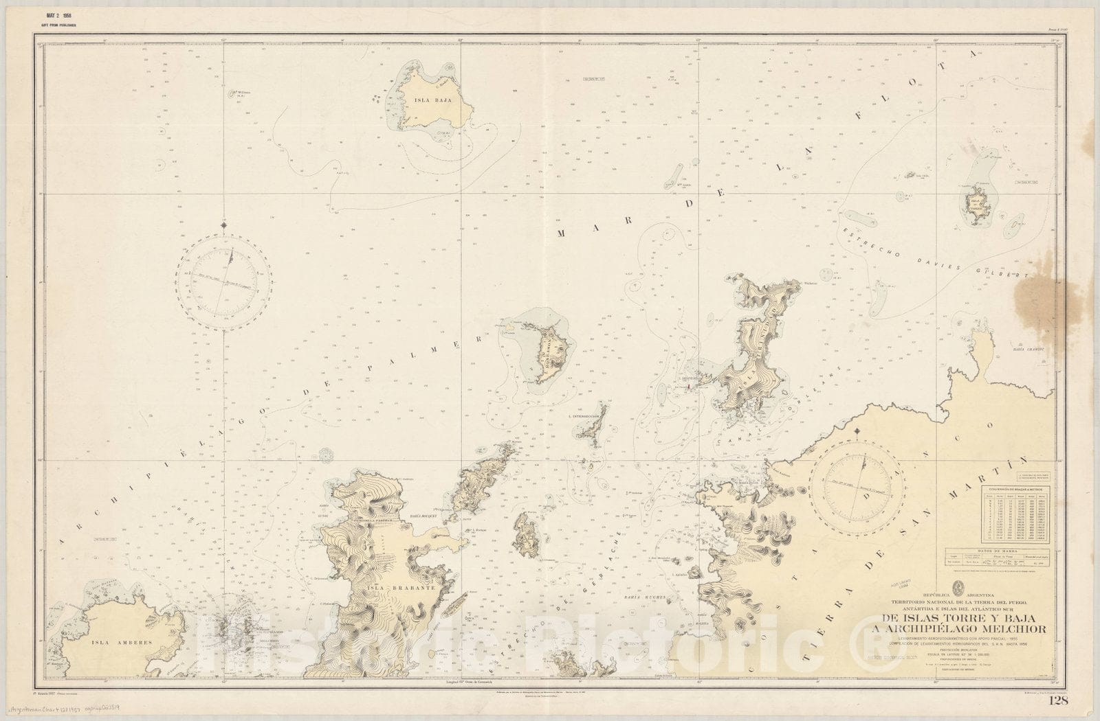 Historic Map : Graham Land 1957, Republica Argentina, Territorio Nacional de la Tierra del Fuego, Antartida e Islas del Atlantico sur, de Islas Torre y Baja a Archipielago Melchior