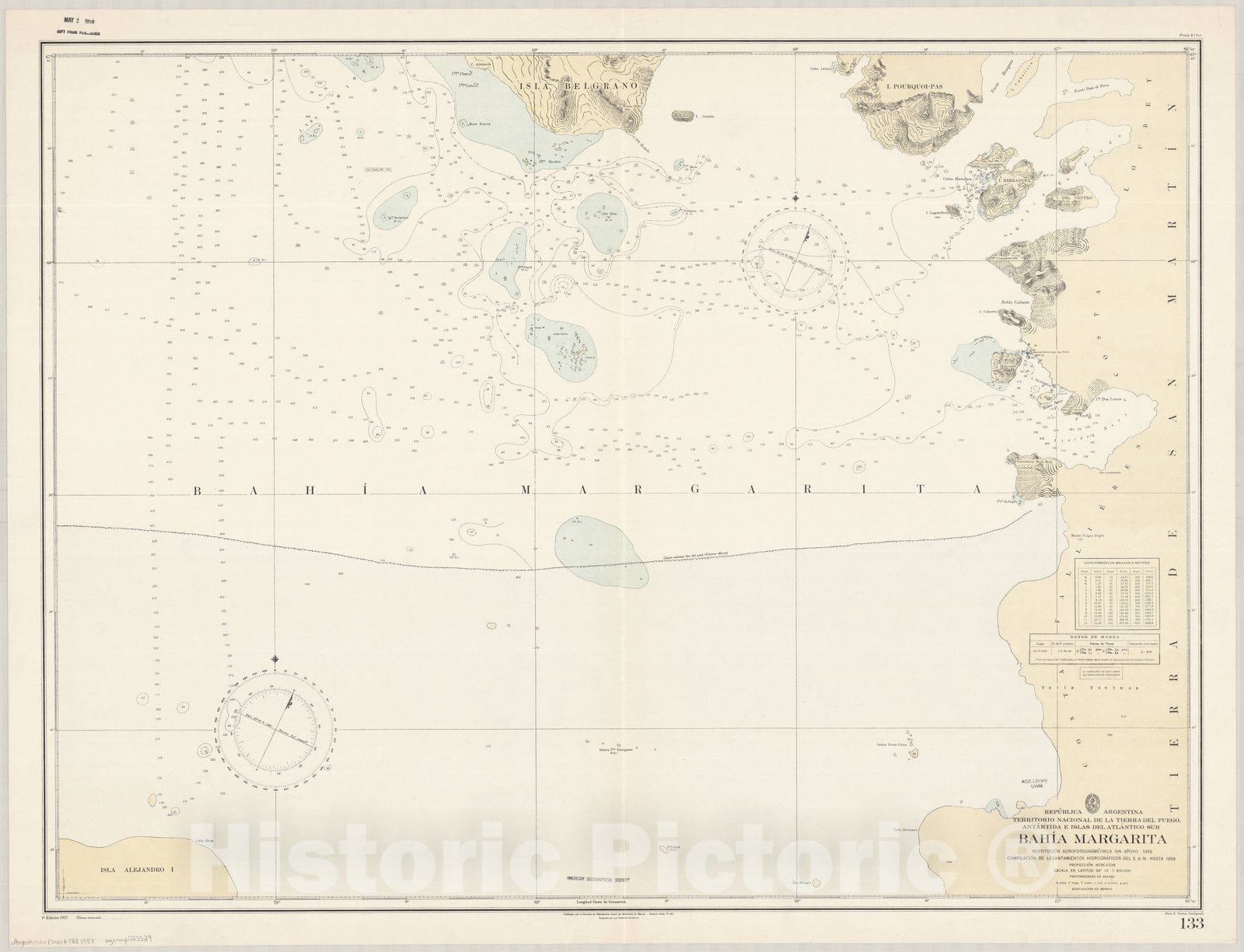 Historic Map : Marguerite Bay 1957, Republica Argentina, Territorio Nacional de la Tierra del Fuego, Antartida e Islas del Atlantico Sur, Bahia Margarita , Antique Vintage Reproduction