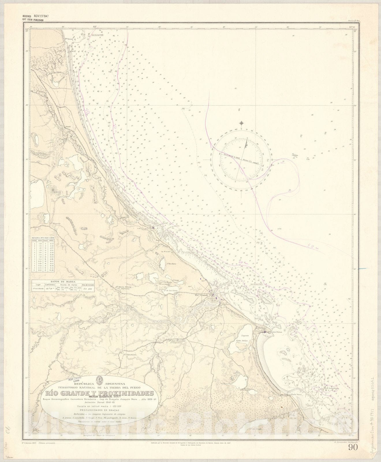 Historic Map : Rio Grande, Tierra del Fuego, Argentina 1947, Republica Argentina, Territorio Nacional de la Tierra del Fuego, Rio Grande y proximidades , Antique Vintage Reproduction