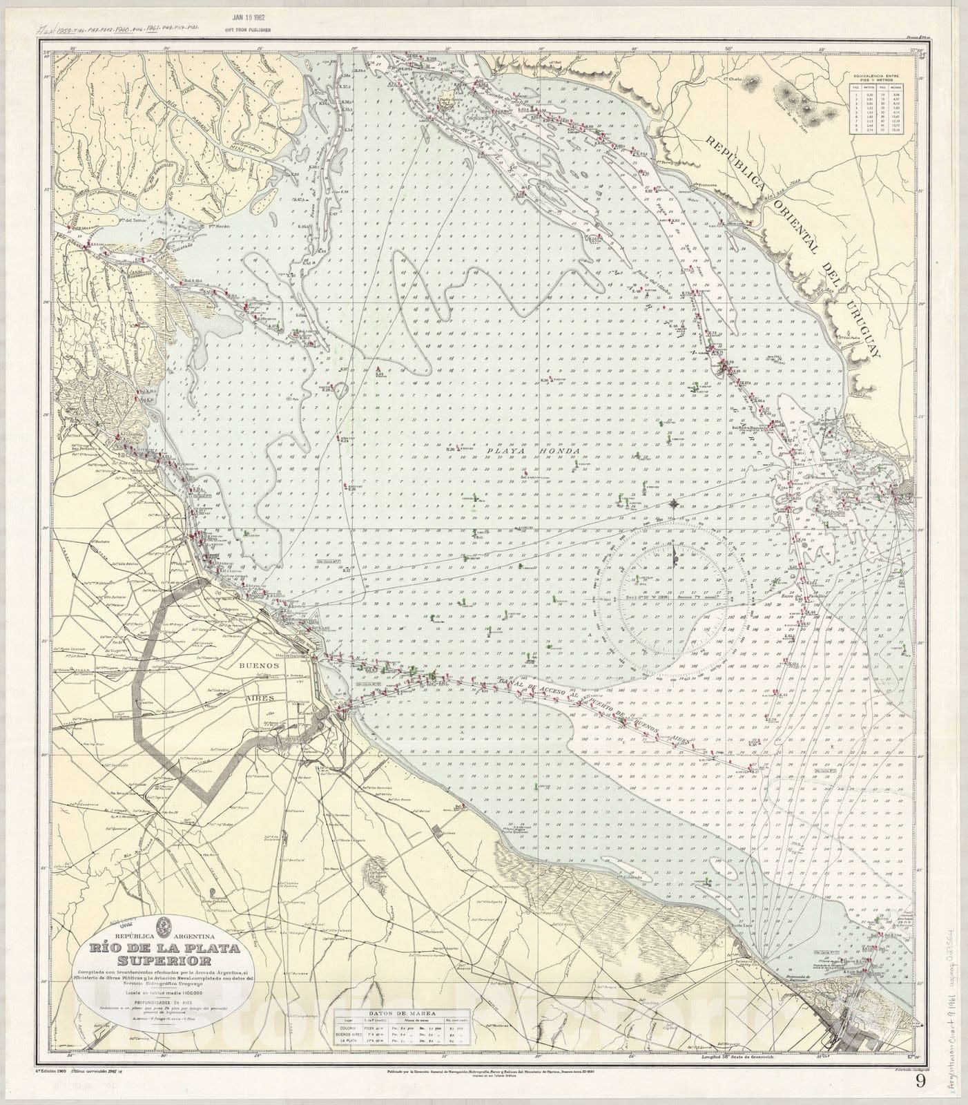 Map : Rio de la Plata, Argentina 1961, Republica Argentina, Rio de la Plata Superior , Antique Vintage Reproduction