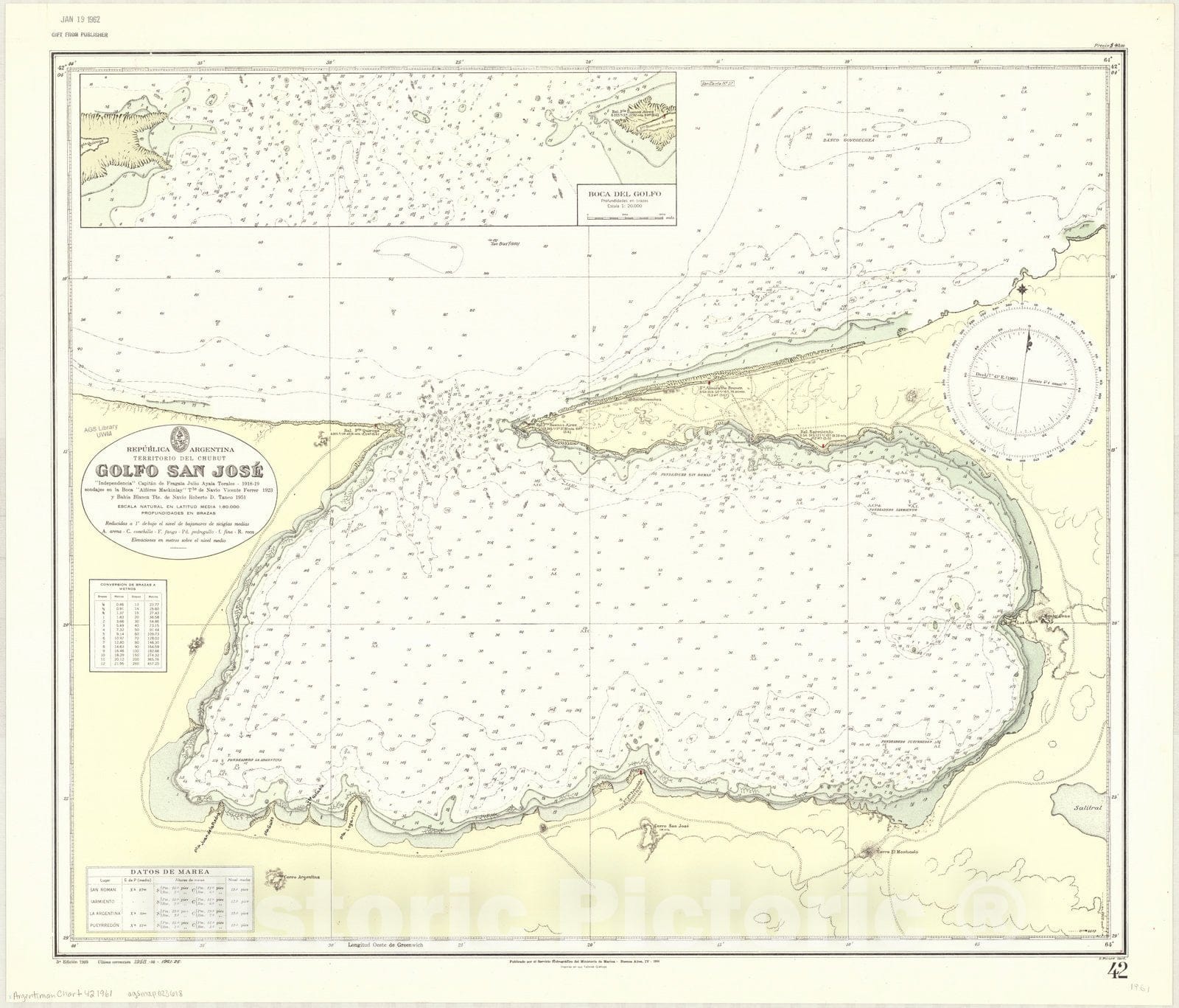Map : San Jose Bay, Argentina 1961, Republica Argentina, Territorio del Chubut, Golfo San Jose , Antique Vintage Reproduction