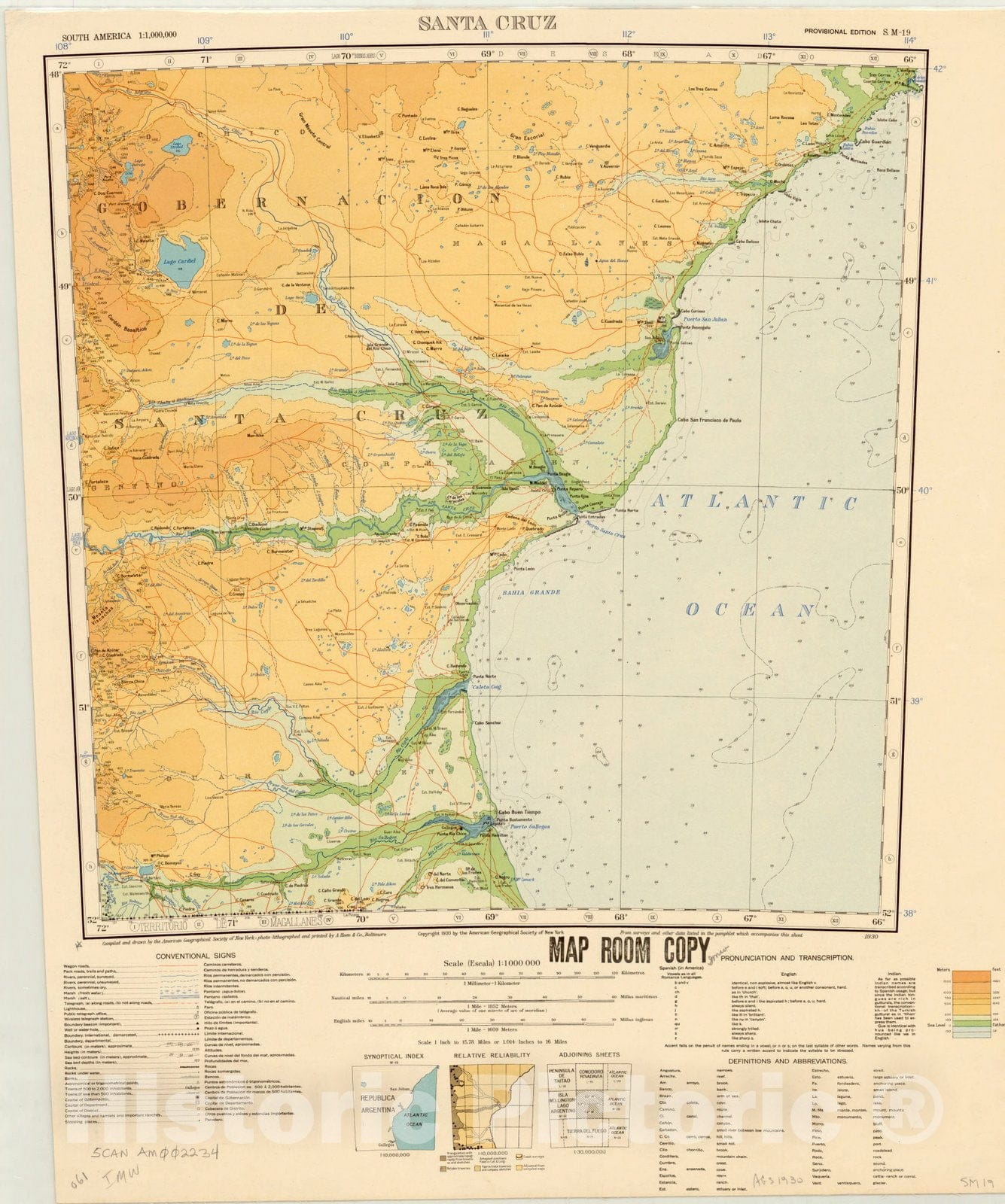 Map : Santa Cruz, Argentina 1930, Map of Hispanic America, Antique Vintage Reproduction