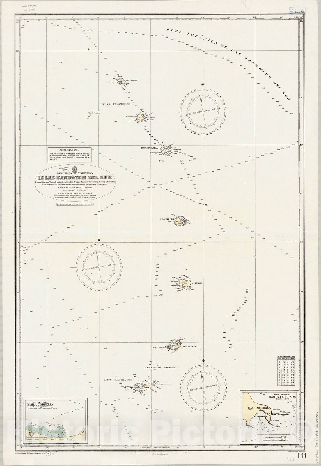 Republica Argentina, Islas Sandwich del Sur / Fragata |"Hercules|" Cap. de Frag. Carlos A. Vinuales Fratata |"Sarandi|" Cap. de Frag. Domingo G. Luis 1952 completada con compilacion de levantamientos expeditivos extranjeros ; publicado por la Direccion