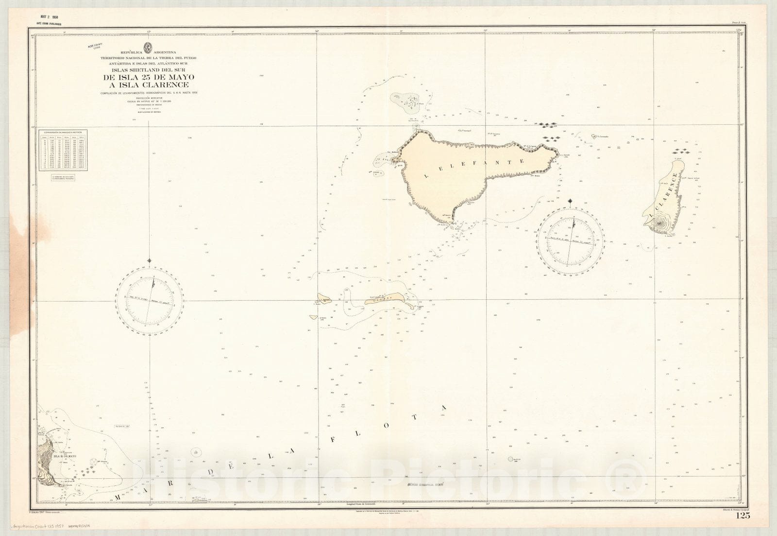 Historic Map : South Shetland Islands 1957, Republica Argentina, Territorio Nacional de la Tierra del Fuego, Antartida e Islas del Atlantico Sur, de Isla 25 de mayo a Isla Clarence